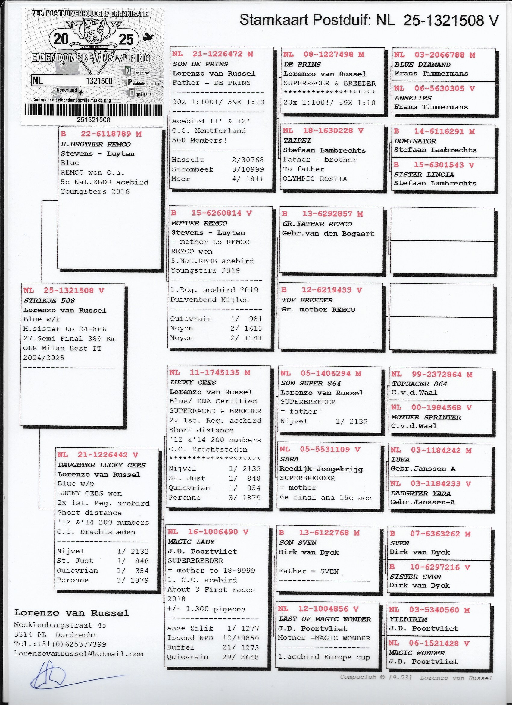Pedigree Lorenzo van Russel, "Halfsis 24-866"