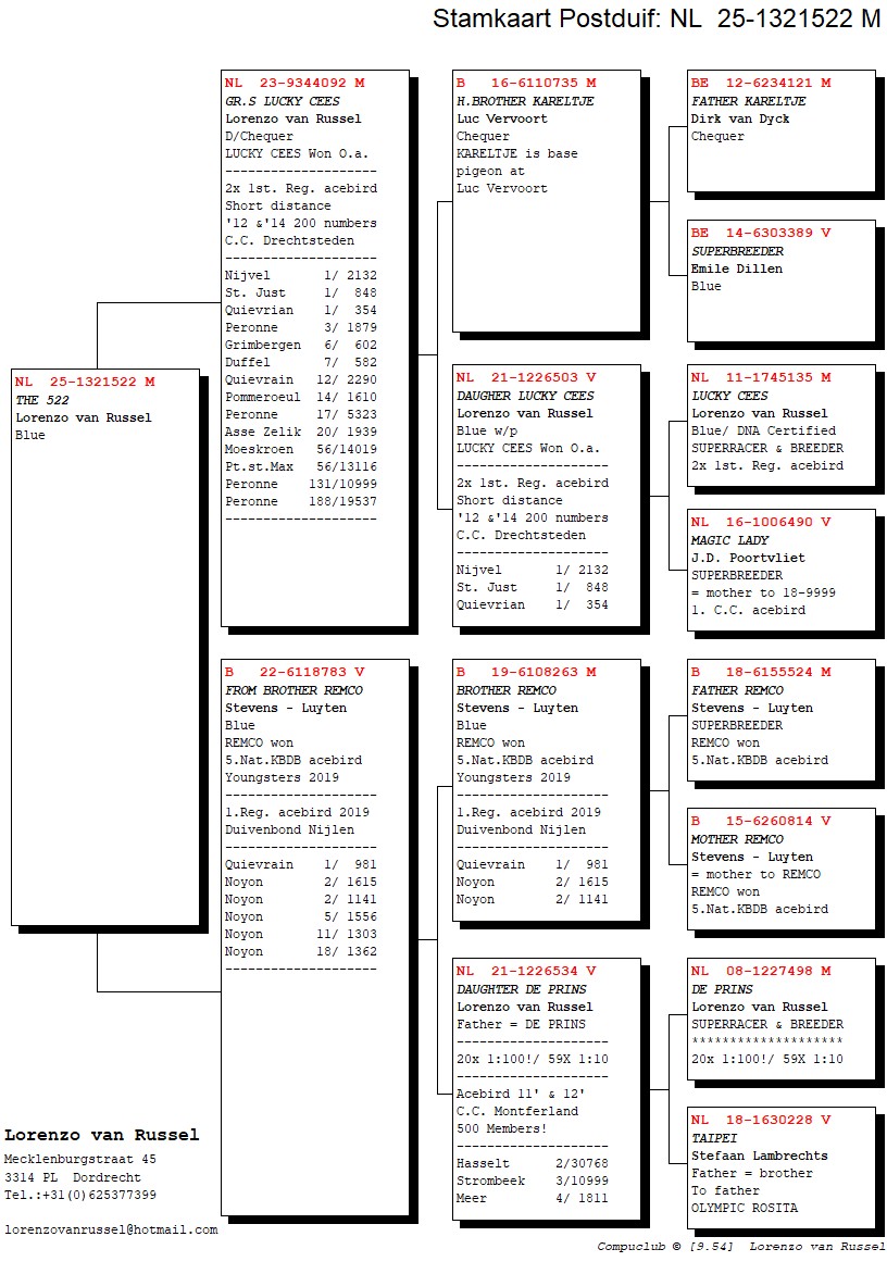 Pedigree Lorenzo van Russel, "Bred from top racers"