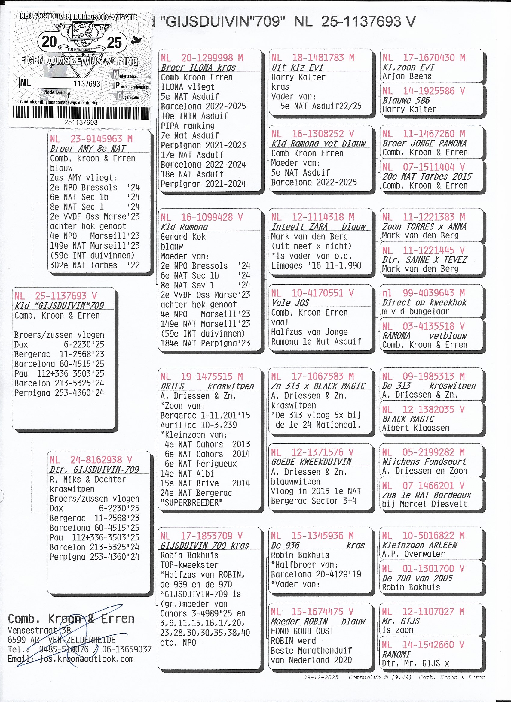 LOT 1 ► Bred from: Br. Amy 8.Nat. Bressols x dtr. Gijsduivin 709