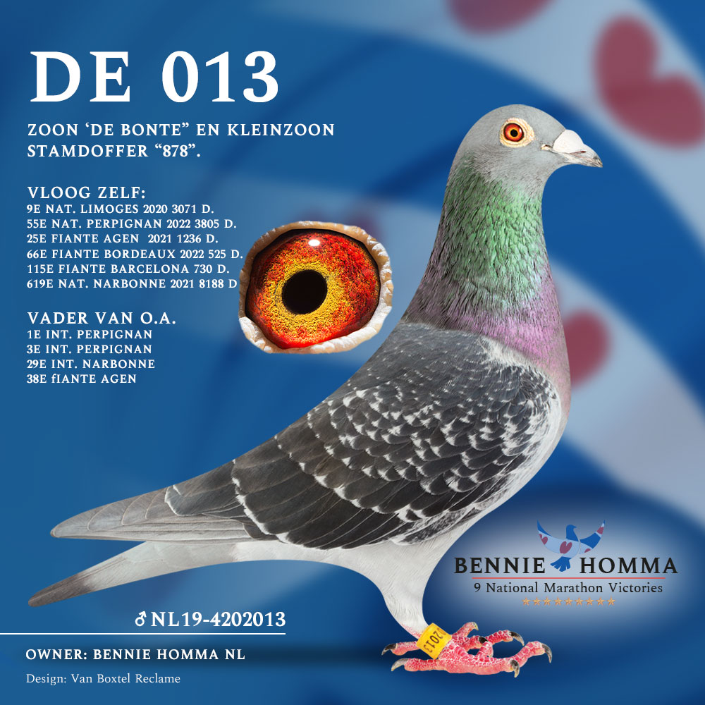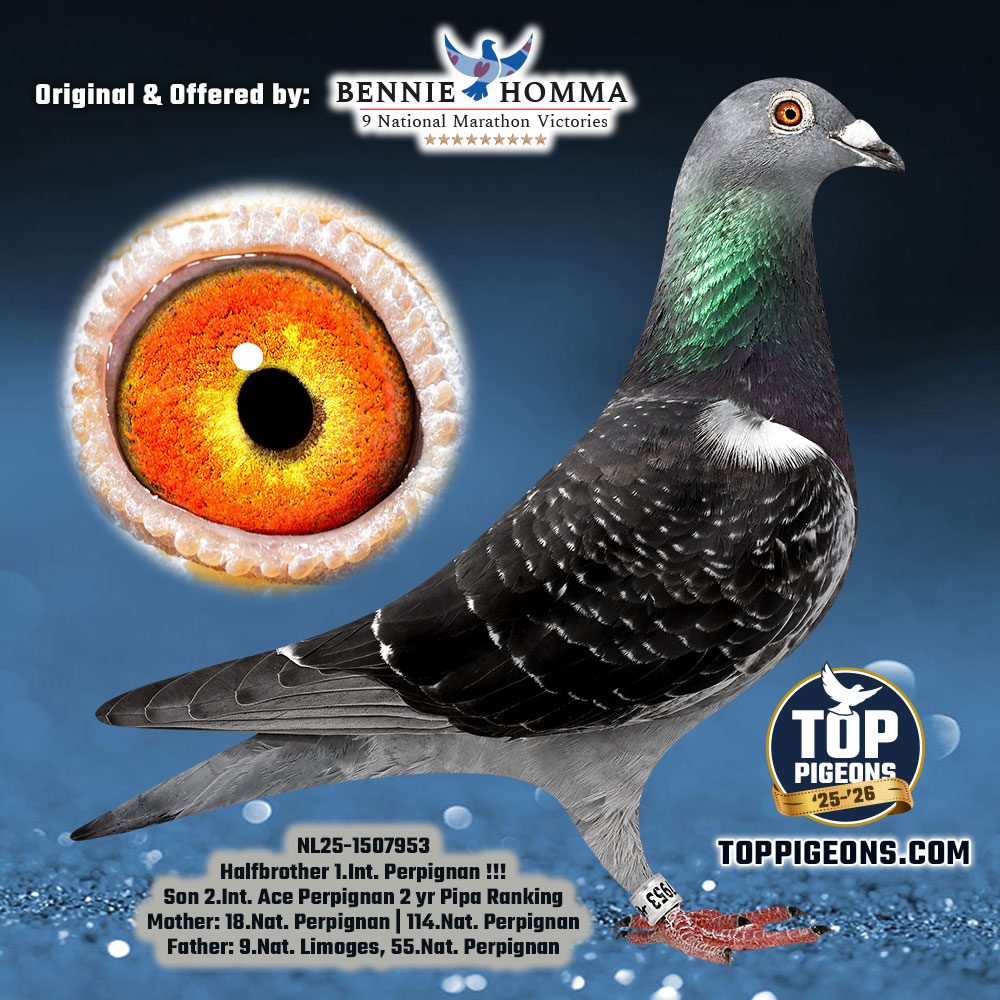 Dam: NL. 19-4202047 2nd Best International Perpignan (1160 km) racer over 2 years in Pipa Ranking.