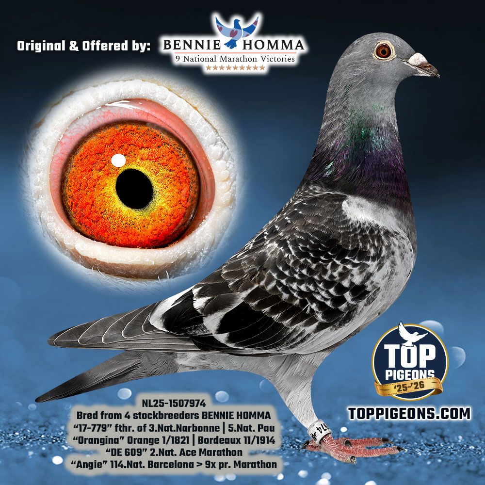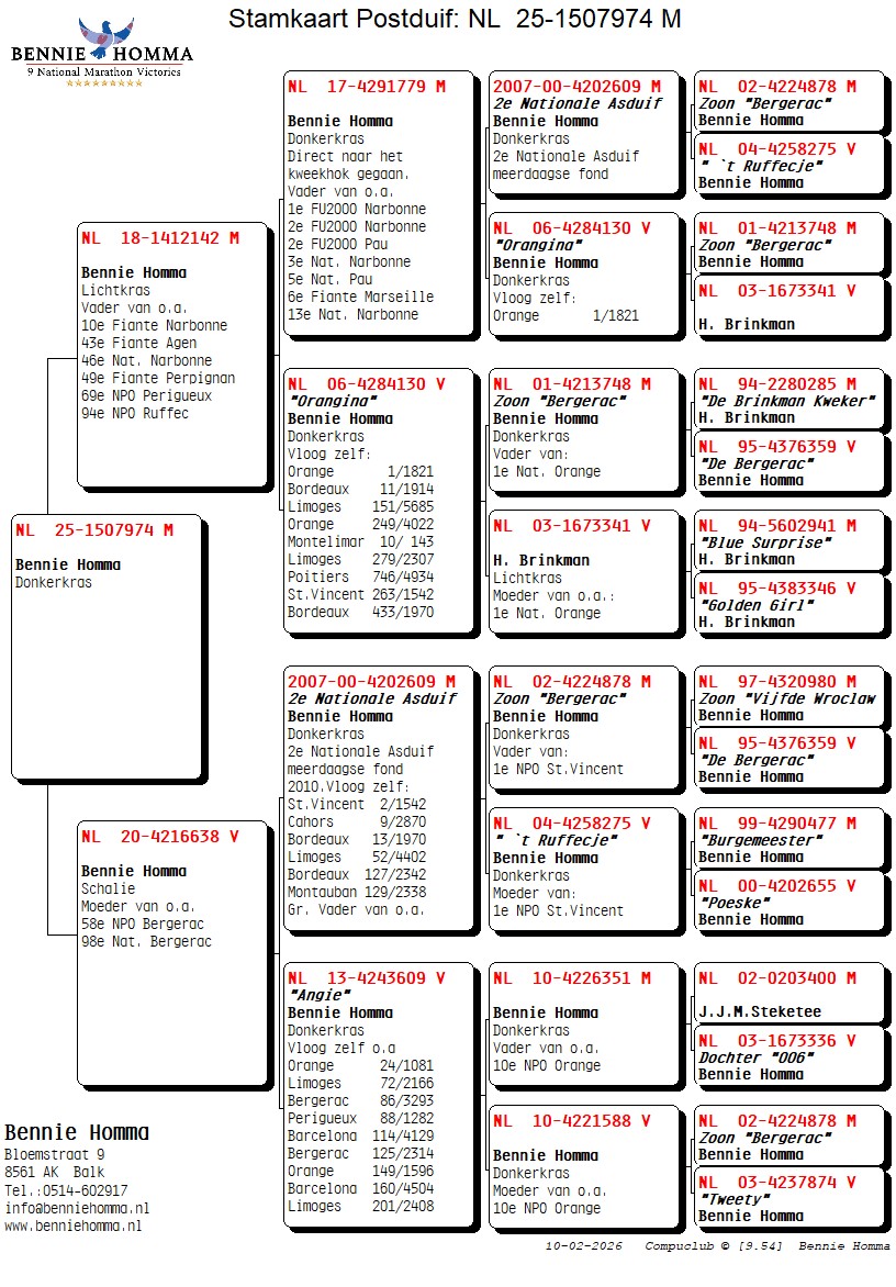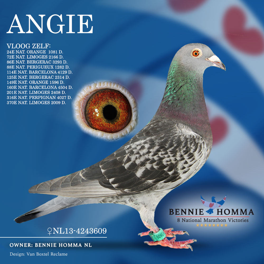 Gr. Sire: NL. 00-4202609 “De 609” October youngster of 2007 has on an old band from 2000 was in 2010 2nd National Ace Pigeon Multi-day long distance.