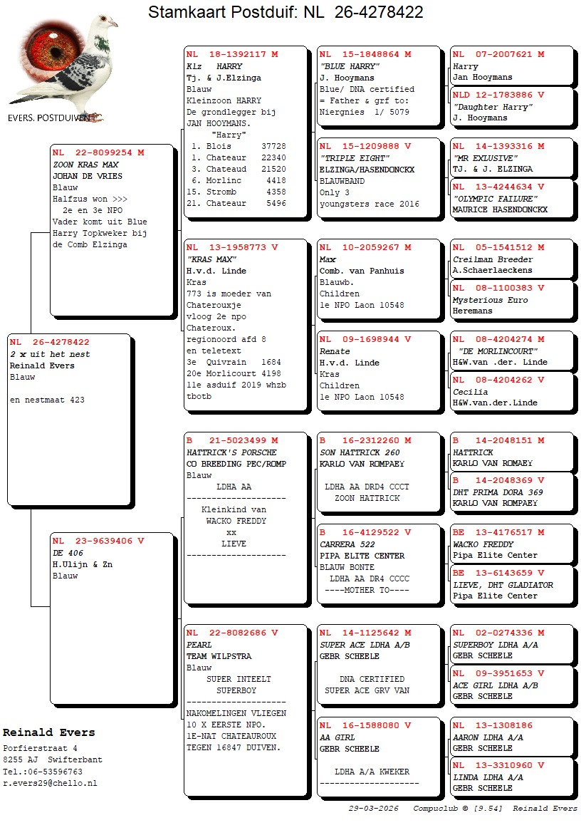 Zijn vader komt uit Blue Harry topkweker Comb. Elzinga