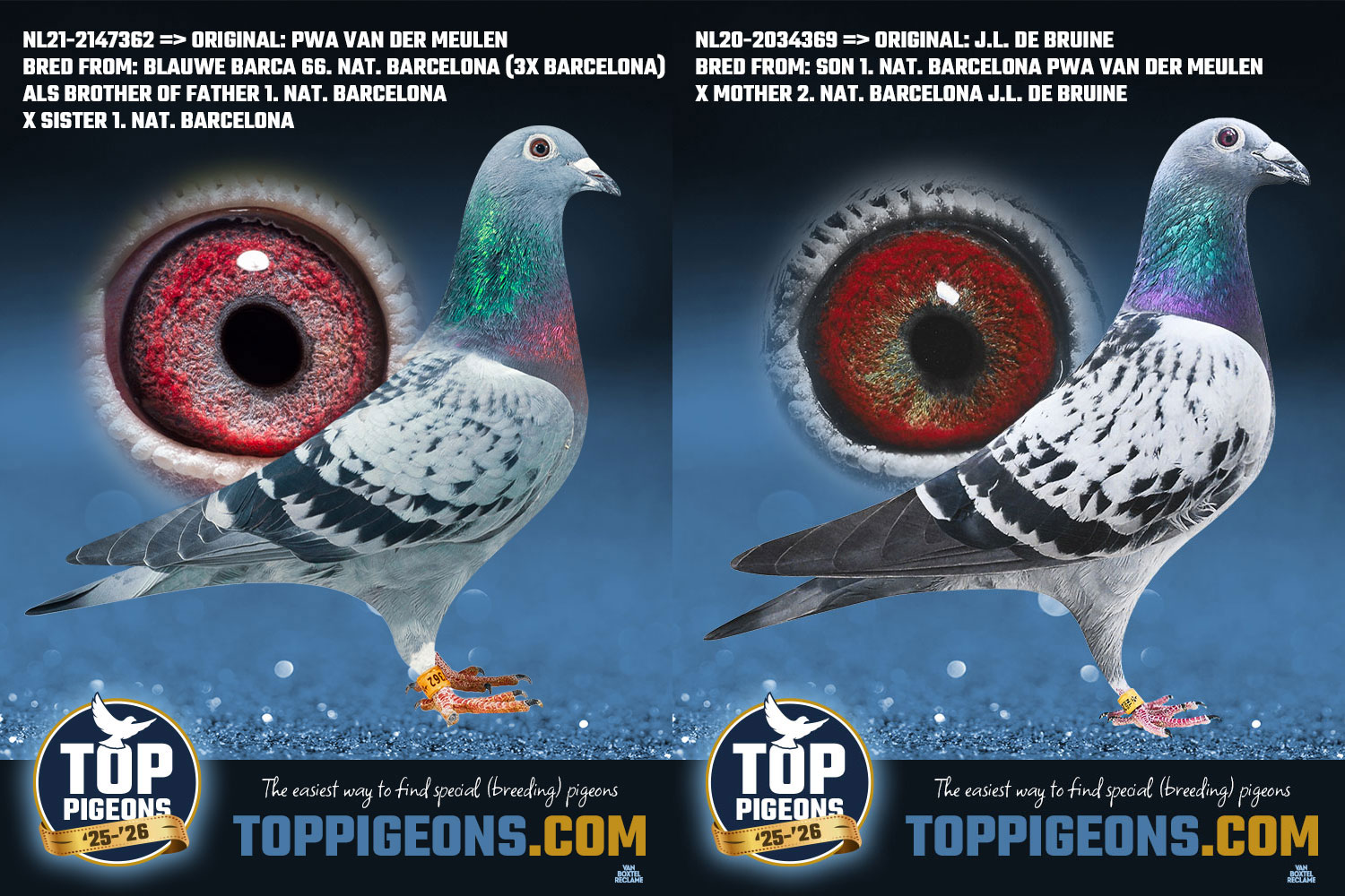 SUPER BARCELONA AUCTION HEN => Original PWA Van der Meulen COCK => Original Jacky de Bruine LIVE now on Top Pigeons: https://auctions.toppigeons.com/Home/TppAuction/tabid/111/auctionId/3383/Default.aspx