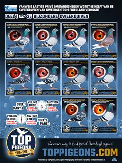 De Noël Peiren NL17-1618999 werd winnares van de 1e GRAND PRIX St. Vincent (1183 km) 2021 en de “Nachtvlieger Peiren” speelde hij in 2019 de 1e NPO LIMOGES 875 km afd. 11 op 1153 duiven. 2e totale concours afd. 7, 8, 9, 10, 11. Deze doffer vloog de 13e zone 4 Periqueux op 1269 duiven 2018. 2x mee en 2x kop en daarna op de kweek! Ook de NL19-1218874 speelde in 2021 de 10e GRAND PRIX '21 Bergerac 1037 km op 2280 duiven en de 8e TXT op Periqueux 965 km NU op 1055 duiven '21. In totaal 7x mee op de Fond en 7x prijs! Als jaarling 4x dagfond 4e asduif in het samenspel. 3x overnacht 2x Teletekst en 100% prijs. Ook dit is een pure Noël Peiren duivin. De “Cahorsduivin” NL22-8052070. Ze speelde 1e in NIC Drachten tegen 322 duiven, 1e jaarling duivin van sector 4, 1e duif van de Friese Fondclub en 2e GRAND PRIX van afd. 11 op 802 duiven op een zware vlucht van 1077 km. En natuurlijk de PURE Jellema de “BOUWVAKKER” die 9 op 9 vloog en altijd vroeg op St. Vincent en sloot af met de 3e GRAND PRIX 2023.