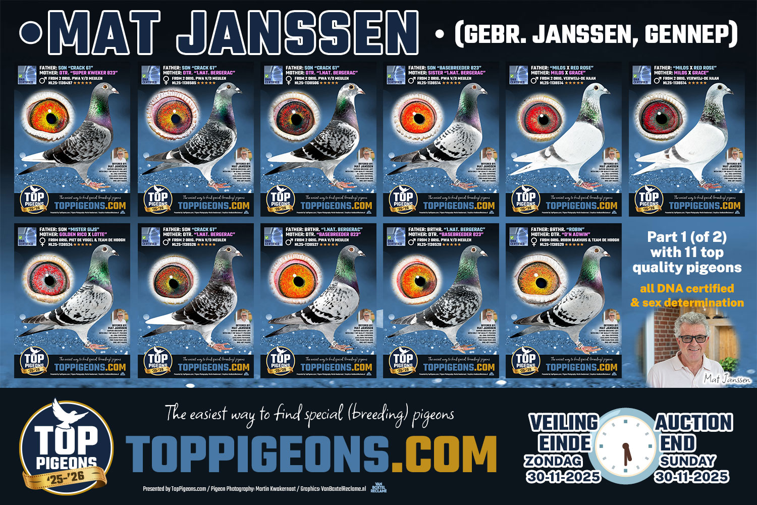 Wie investeert in duiven van Mat Janssen, haalt bloedlijnen in huis die gebouwd zijn op exclusiviteit, selectie en bewezen klasse.