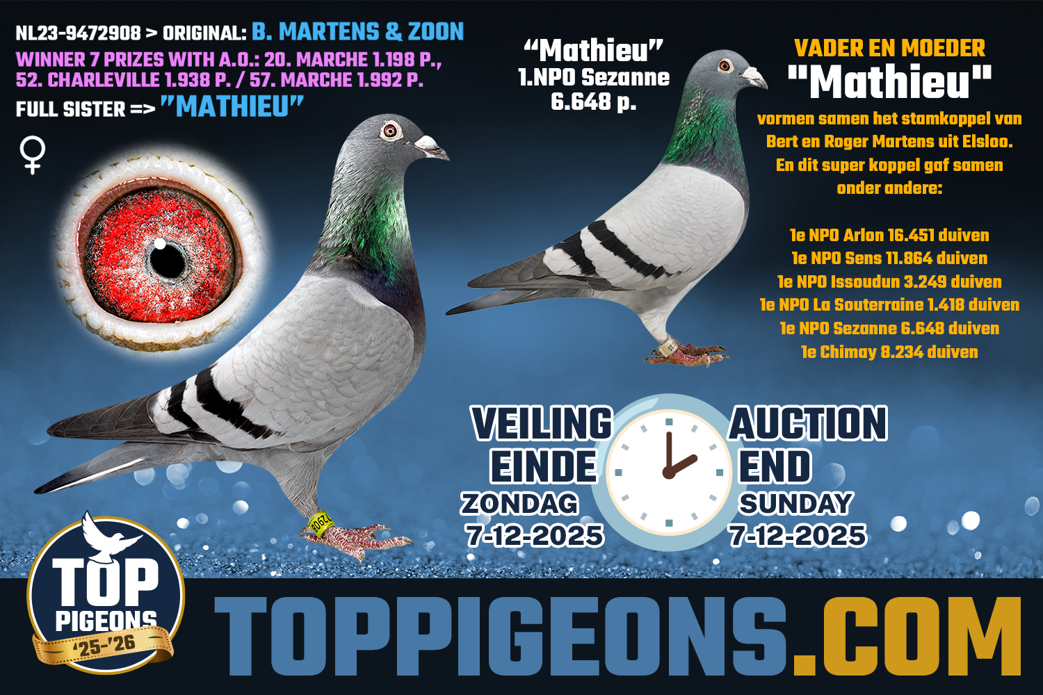 van Bert en Roger Martens uit Elsloo. En dit super koppel gaf samen onder andere de onderstaande duiven en resultaten: