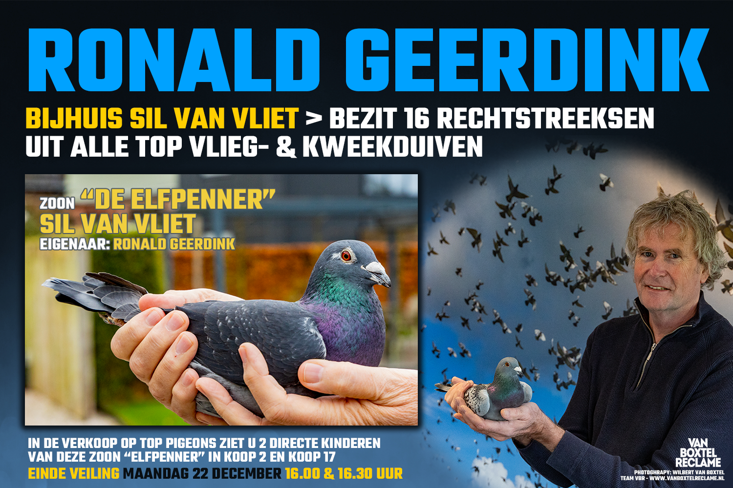 Met 16 duiven uit de allerbeste duiven van Sil van Vliet mag je wel stellen dat Ronald Geerdink het bijhuis is van het kampioenenhok: Sil van Vliet.