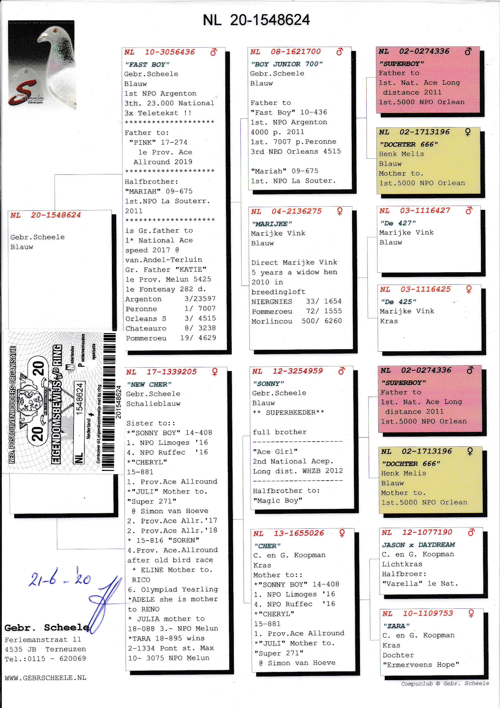 Pedigree Gebr. Scheele, "Son Fast Boy x New Cher"