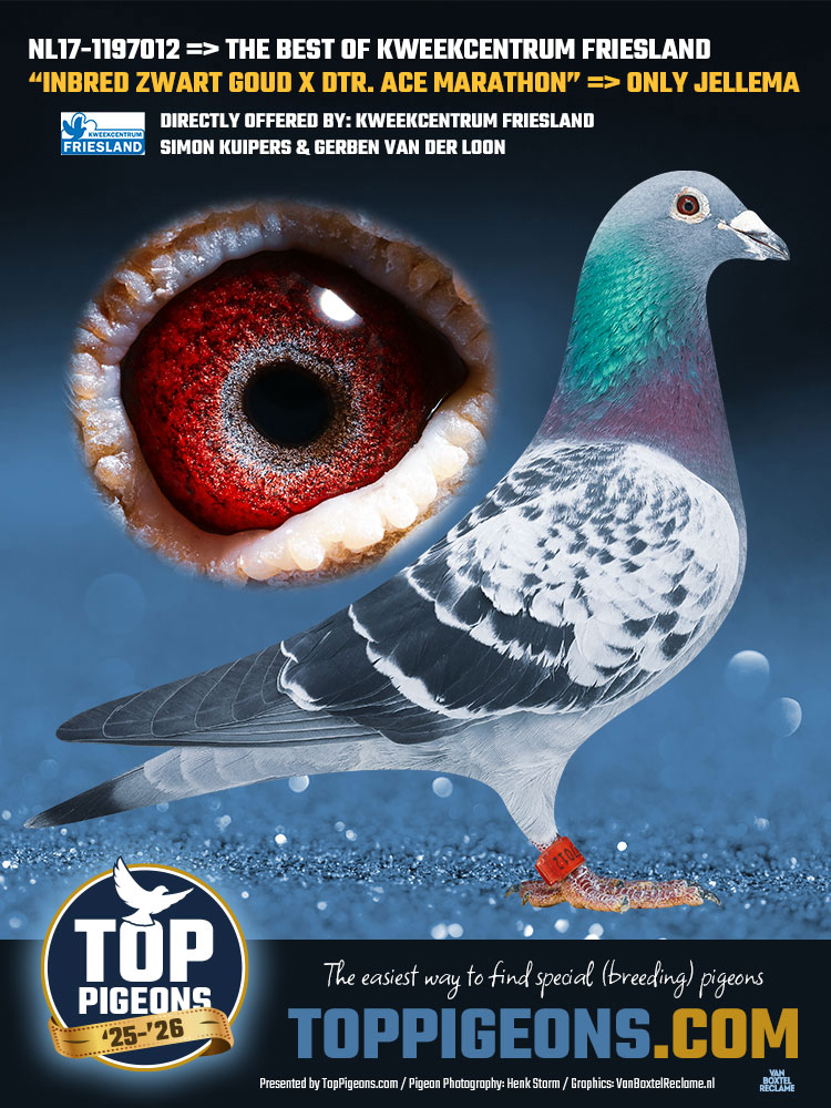 NL17-1197012 Kras doffer IS EEN SUBLIEME JELLEMA KWEEKDOFFER UIT DE BESTE JELLEMA`S VAN KEES DROOG x CEES NIJDEKEN. Van moederskant is hij kleinzoon van de Jellema Kampioensduif 2015 van Marathon Noord.