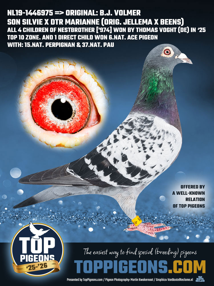 ALL 4 CHILDREN OF NESTBROTHER ['974] WON BY THOMAS VOGHT (DE) IN ‘25 TOP 10 ZONE. AND 1 DIRECT CHILD WON 6.NAT. ACE PIGEON