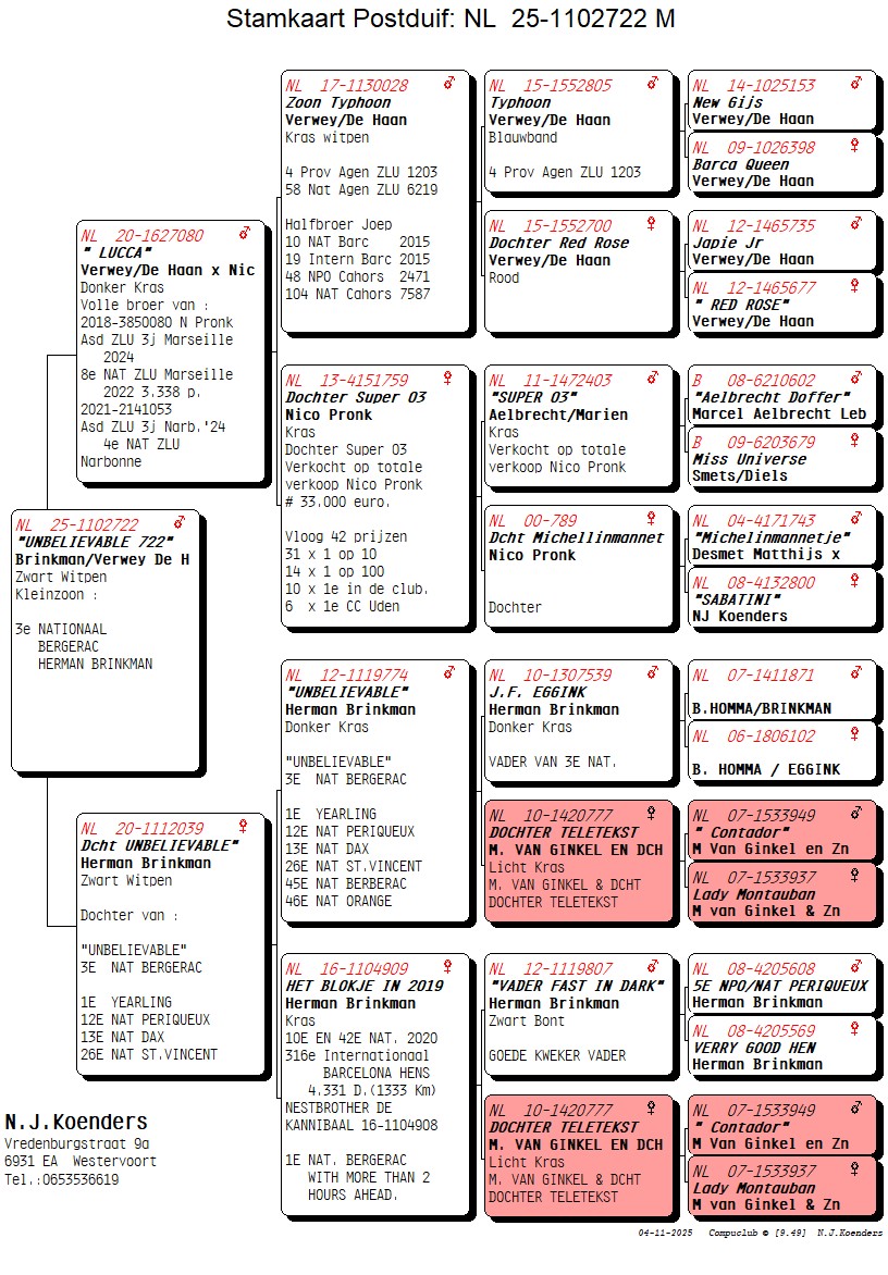 FATHER: “LUCCA” BROTHER 1.NAT.ACE MARSEILLE 3 YR/1.NAT.ACE NARBONNE 3 YR MOTHER: DTR. “UNBELIEVABLE” 3.NAT. BERGERAC, 12.NAT. PERIGUEUX, 13.NAT. DAX