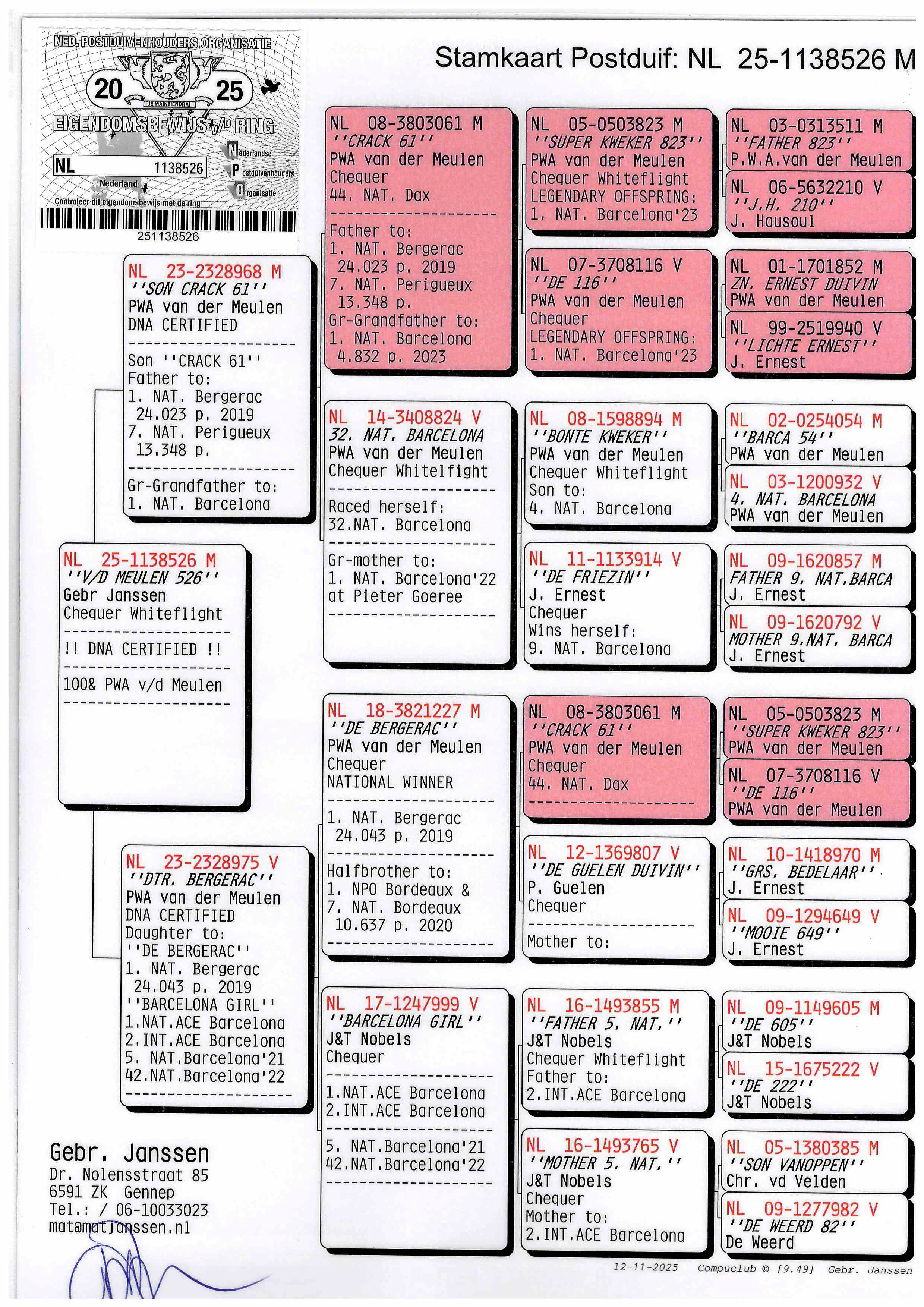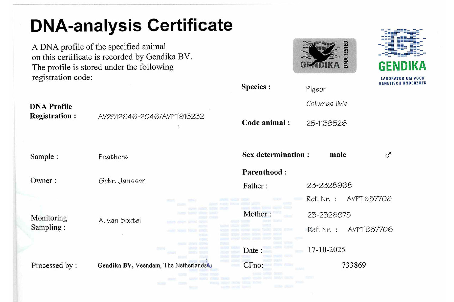 LOT 1 => ♂ DNA CERTIFIED & SEX DETERMINATION FATHER: SON “CRACK 61”