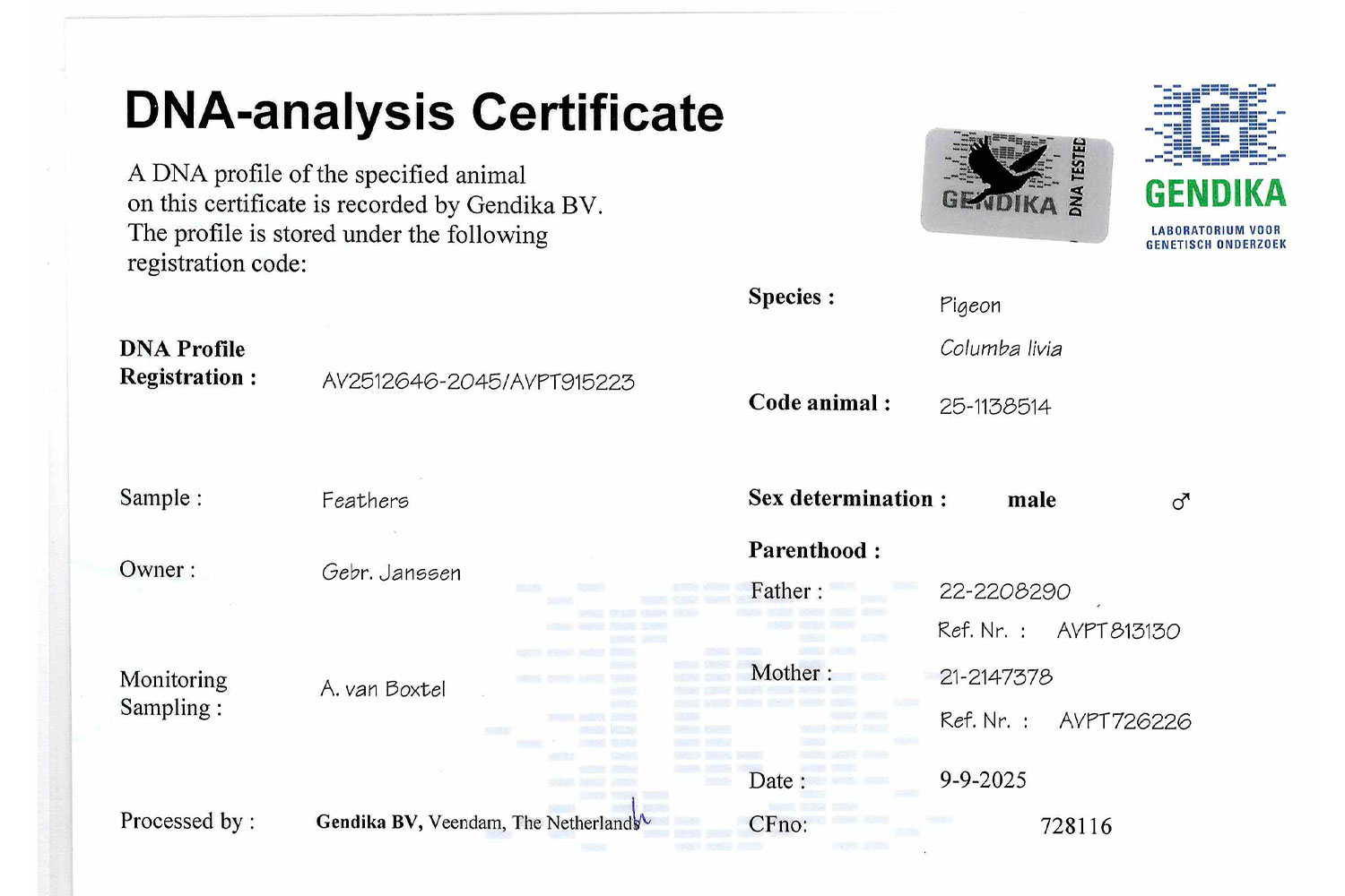LOT 2 => ♂ DNA CERTIFIED & SEX DETERMINATION