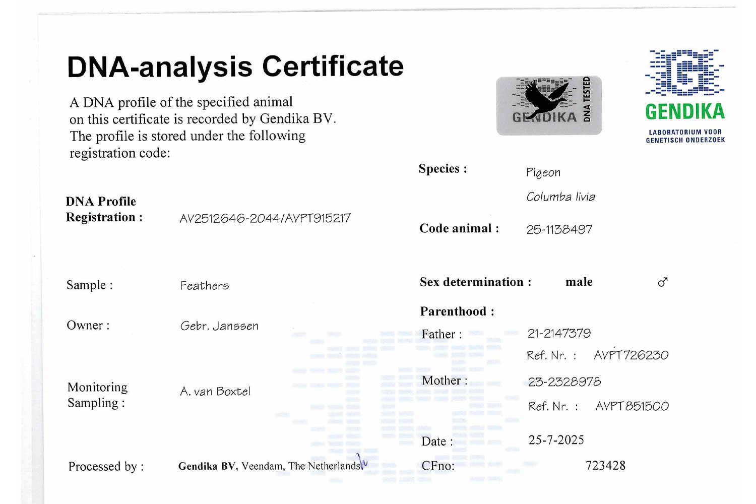 LOT 7 => ♂ DNA CERTIFIED & SEX DETERMINATION FATHER: SON “CRACK 61”