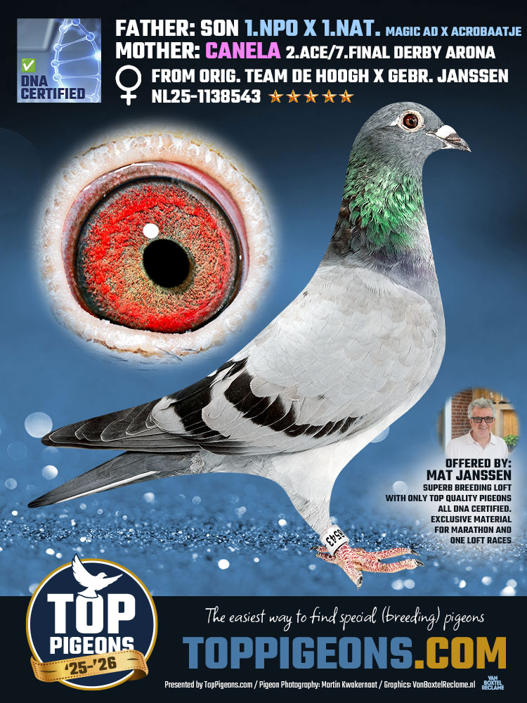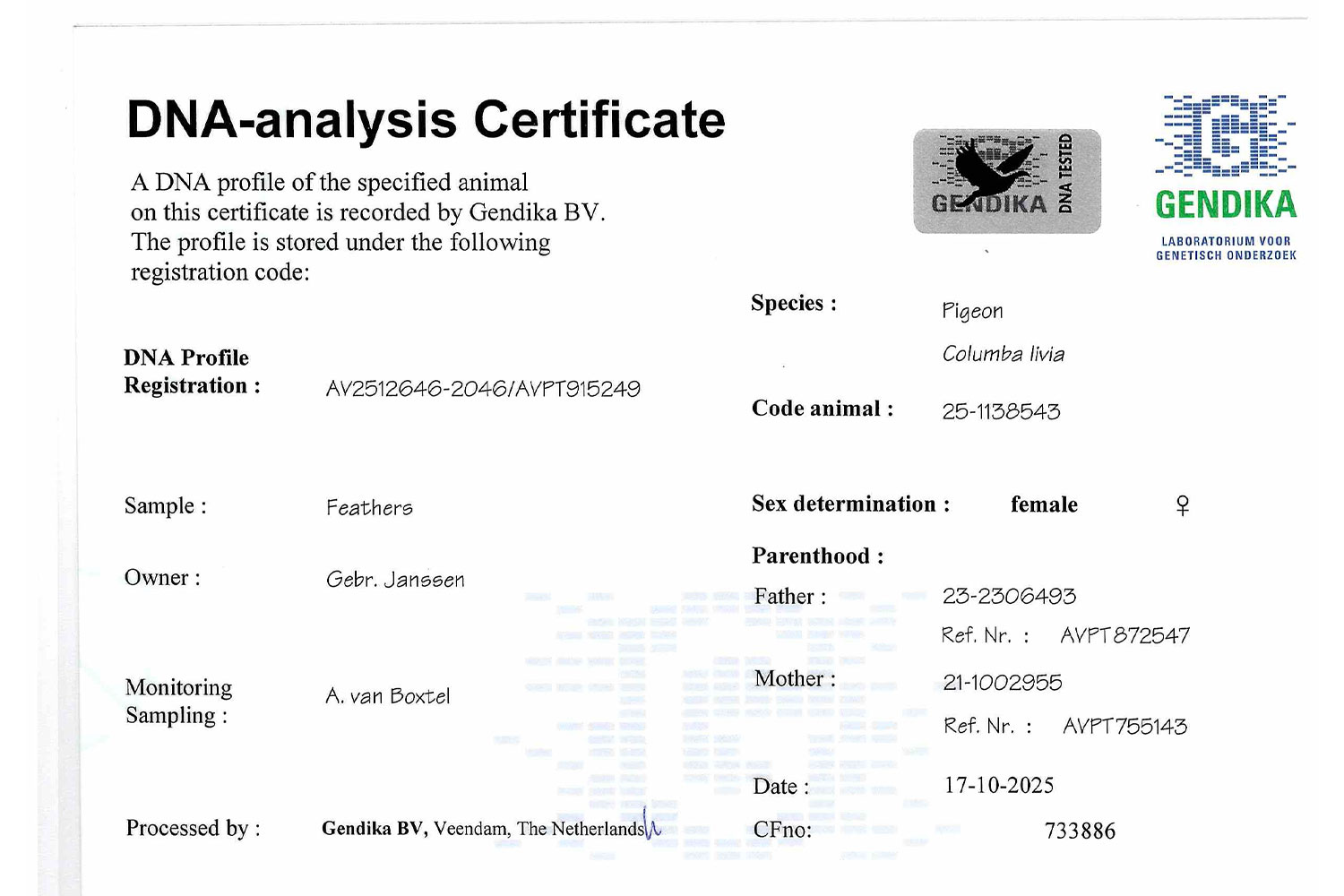 LOT 12 => ♀ DNA CERTIFIED & SEX DETERMINATION FATHER: SON 1.NPO X 1.NAT. MAGIC AD X ACROBAATJE
