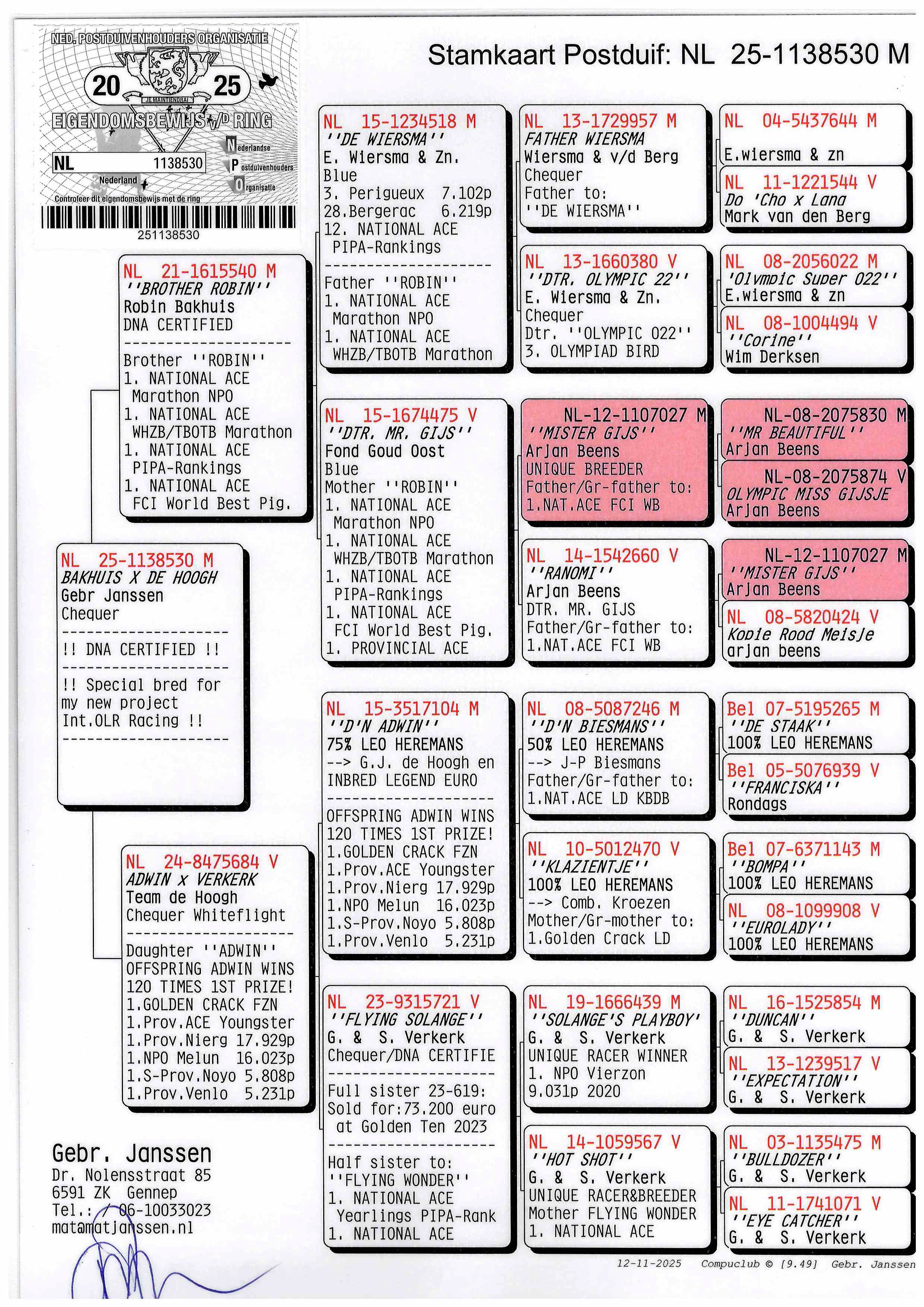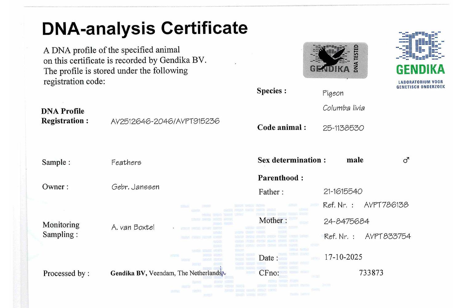 LOT 14 => ♂ DNA CERTIFIED & SEX DETERMINATION FATHER: BRTHR. “ROBIN”