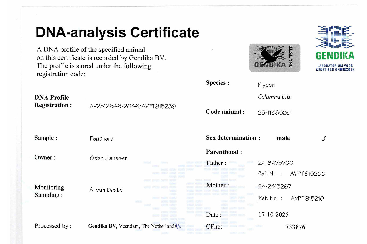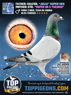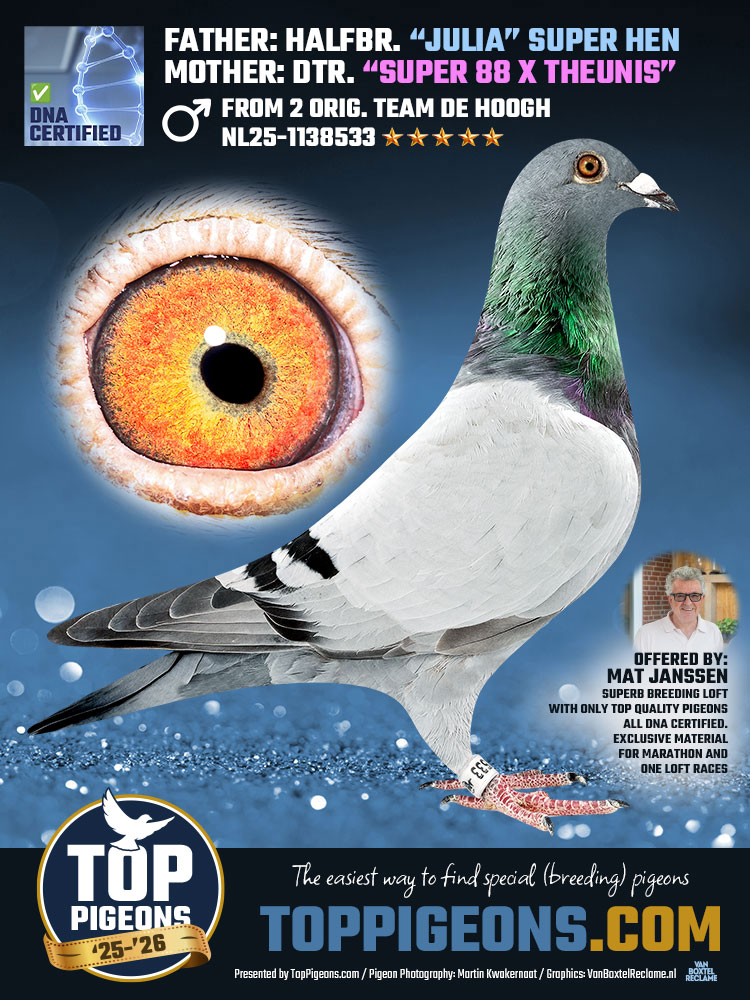 LOT 16 => ♂ DNA CERTIFIED & SEX DETERMINATION FATHER: HALFBR. “JULIA” SUPER HEN