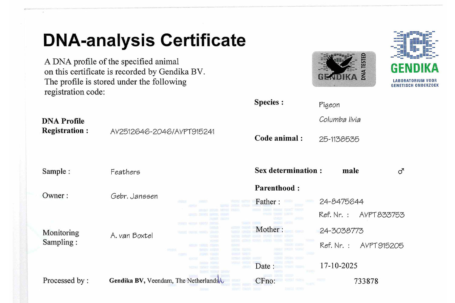 LOT 21 => ♂ DNA CERTIFIED & SEX DETERMINATION FATHER: “D’N ADWIN X LIENEKE”
