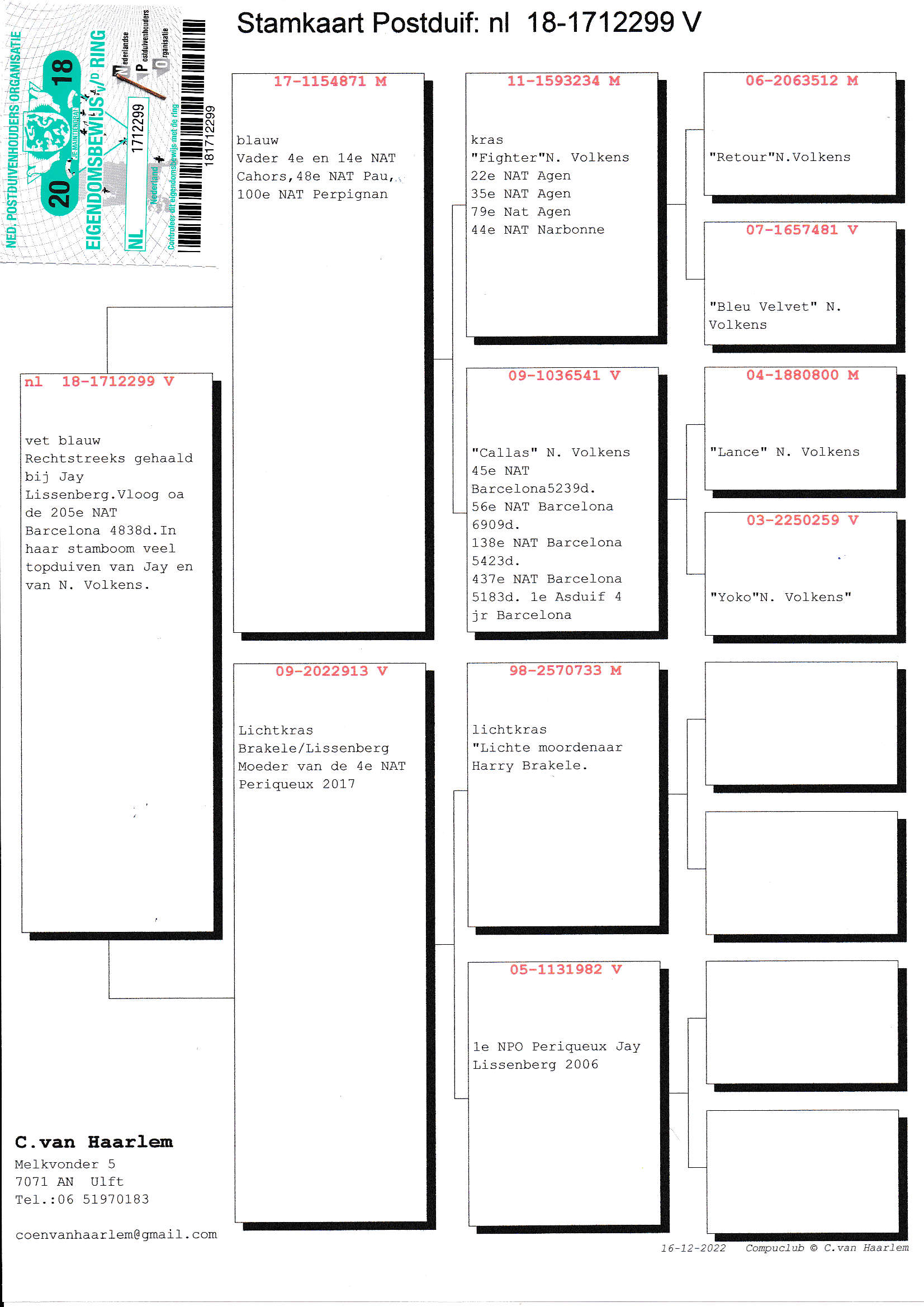 Pedigree Kees Boomaerts, "She won herself: 205. Nat. Barca"