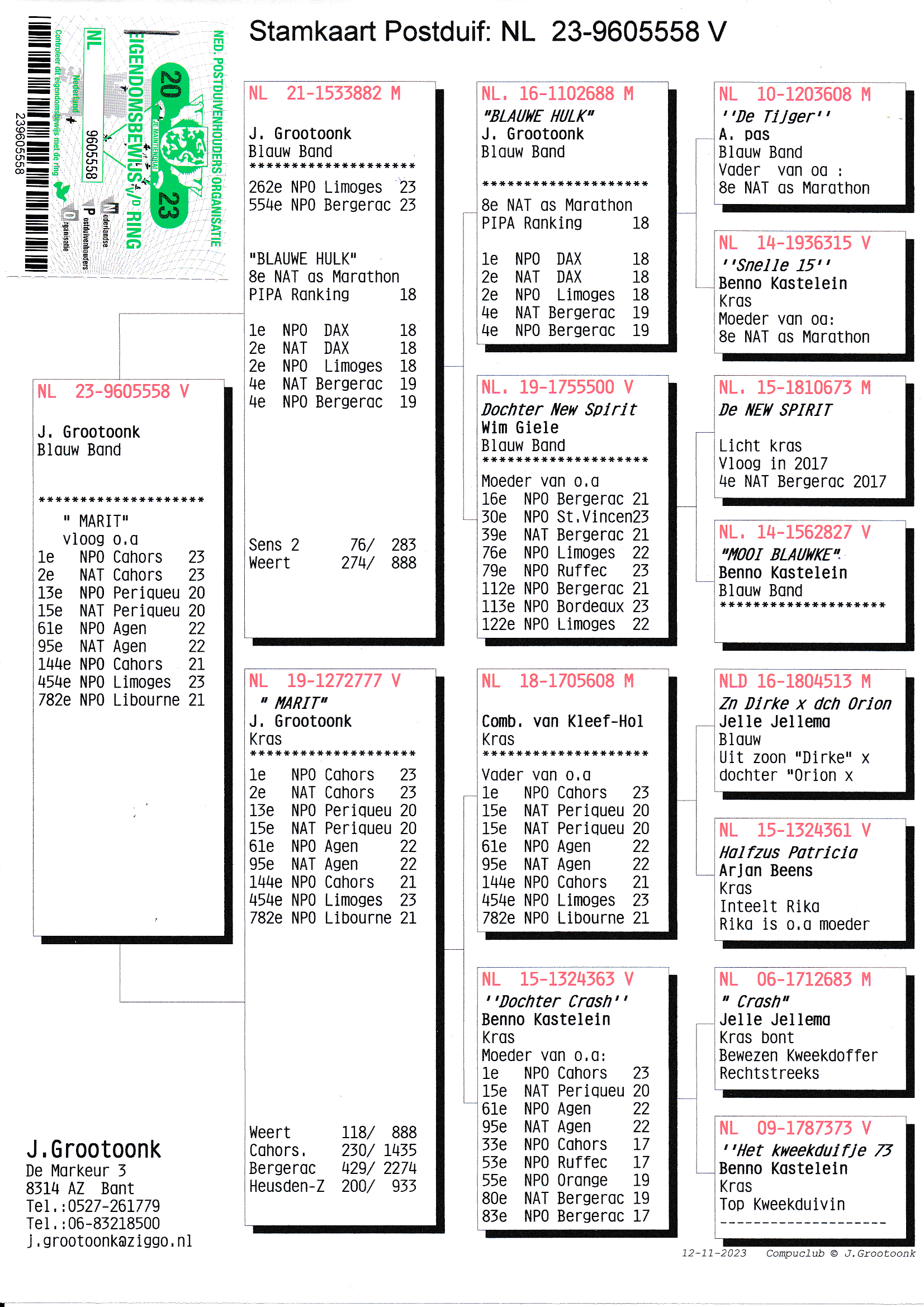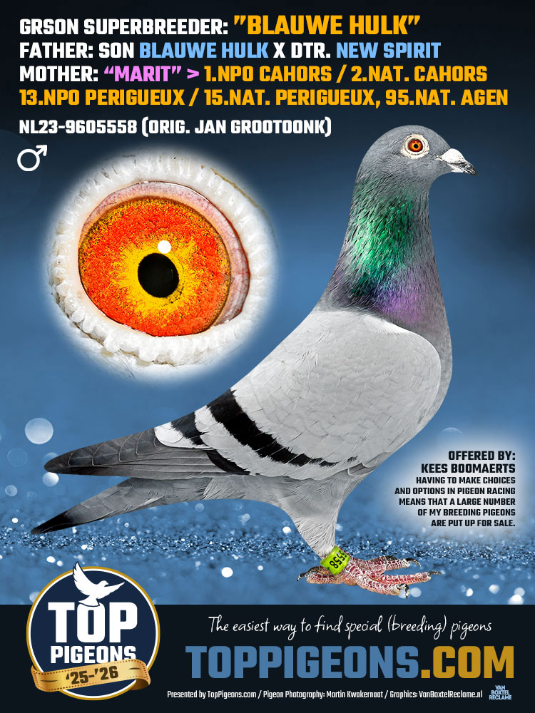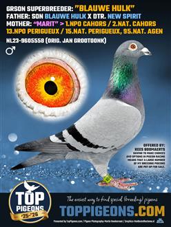 sterk blauw doffertje. Klz Blauwe hulk uit Marit: 1 van de 2 beste vliegduivinnen van Jan Grootoonk op de middaglossing.