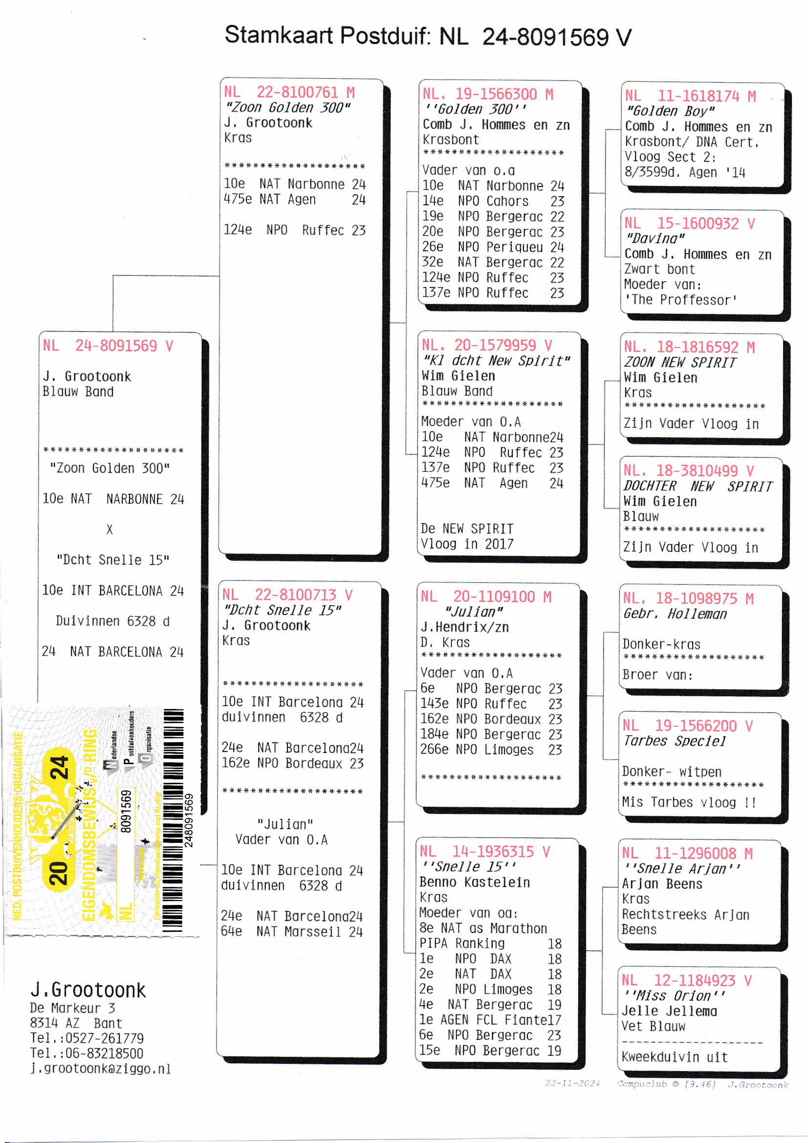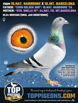 blauwe duivin super voor de kweek uit 10e nat ZLU Narbonne 2024 x 24e nat ZLU Barcelona 2024. Zie hier de kweekwaarde van De New Spirit x Mooi Blauwke en haar volle zus Snelle 15.
