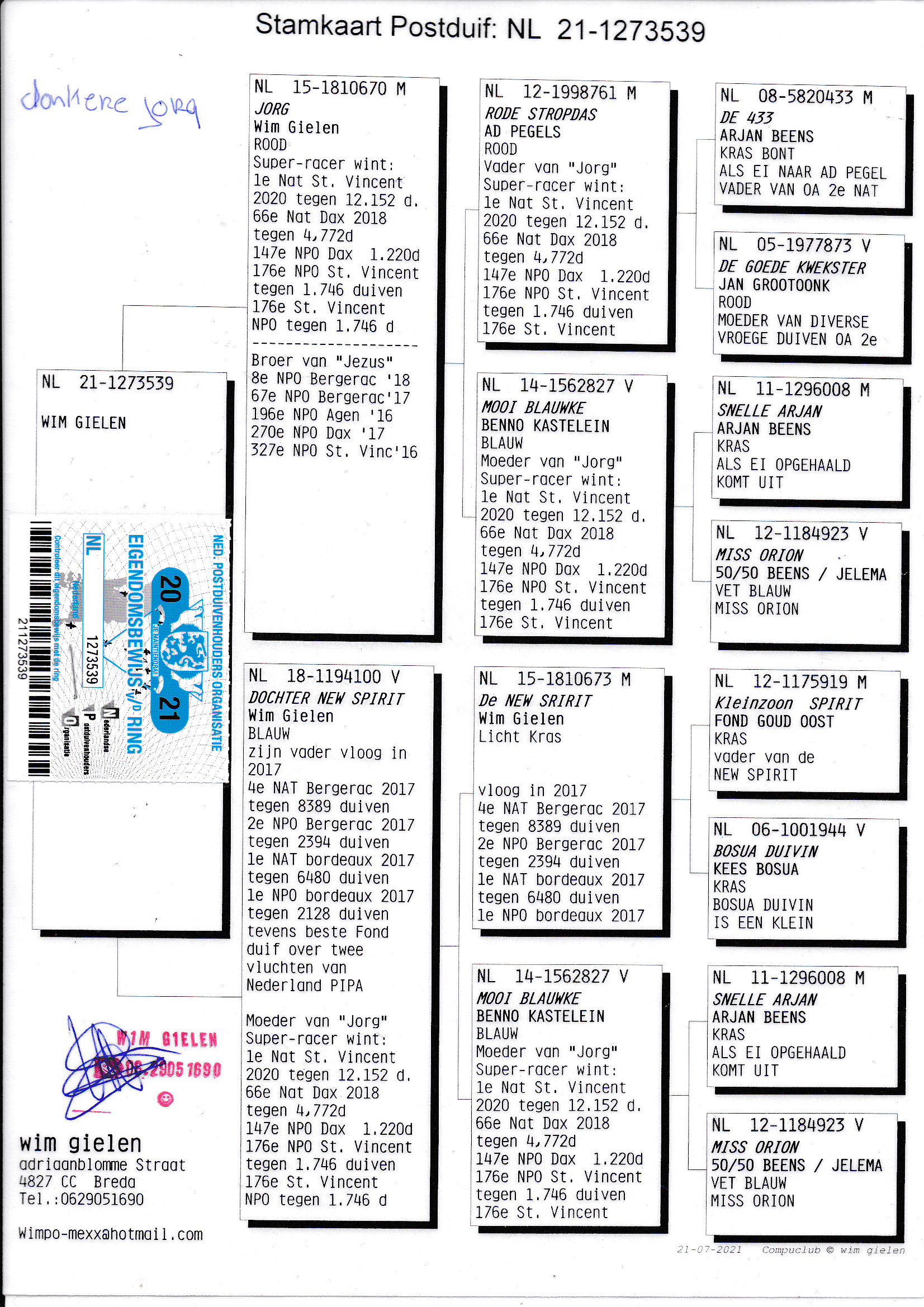 Sterke donkere doffer uit Jorg 1e nat St Vincent. Inteelt Mooi Blauwke en klzn New Spirit.