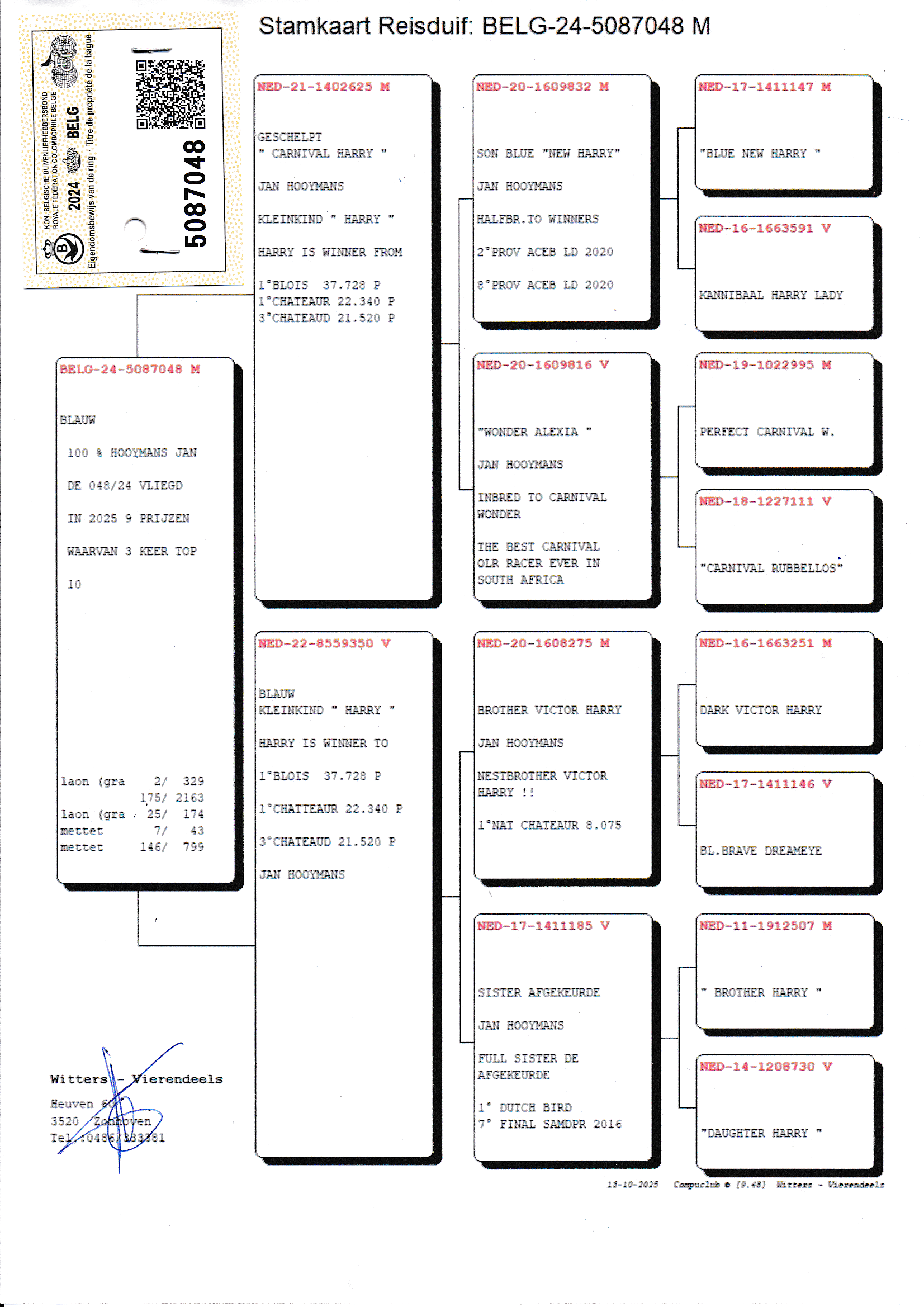 Pedigree Witters-Vierendeels, "Inbred Harry"