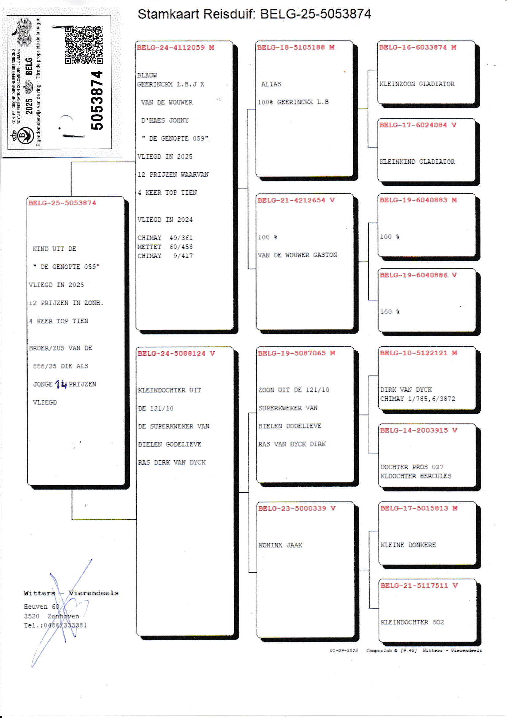 Pedigree Witters-Vierendeels, "Brthr/Sis 888/25 with 14
