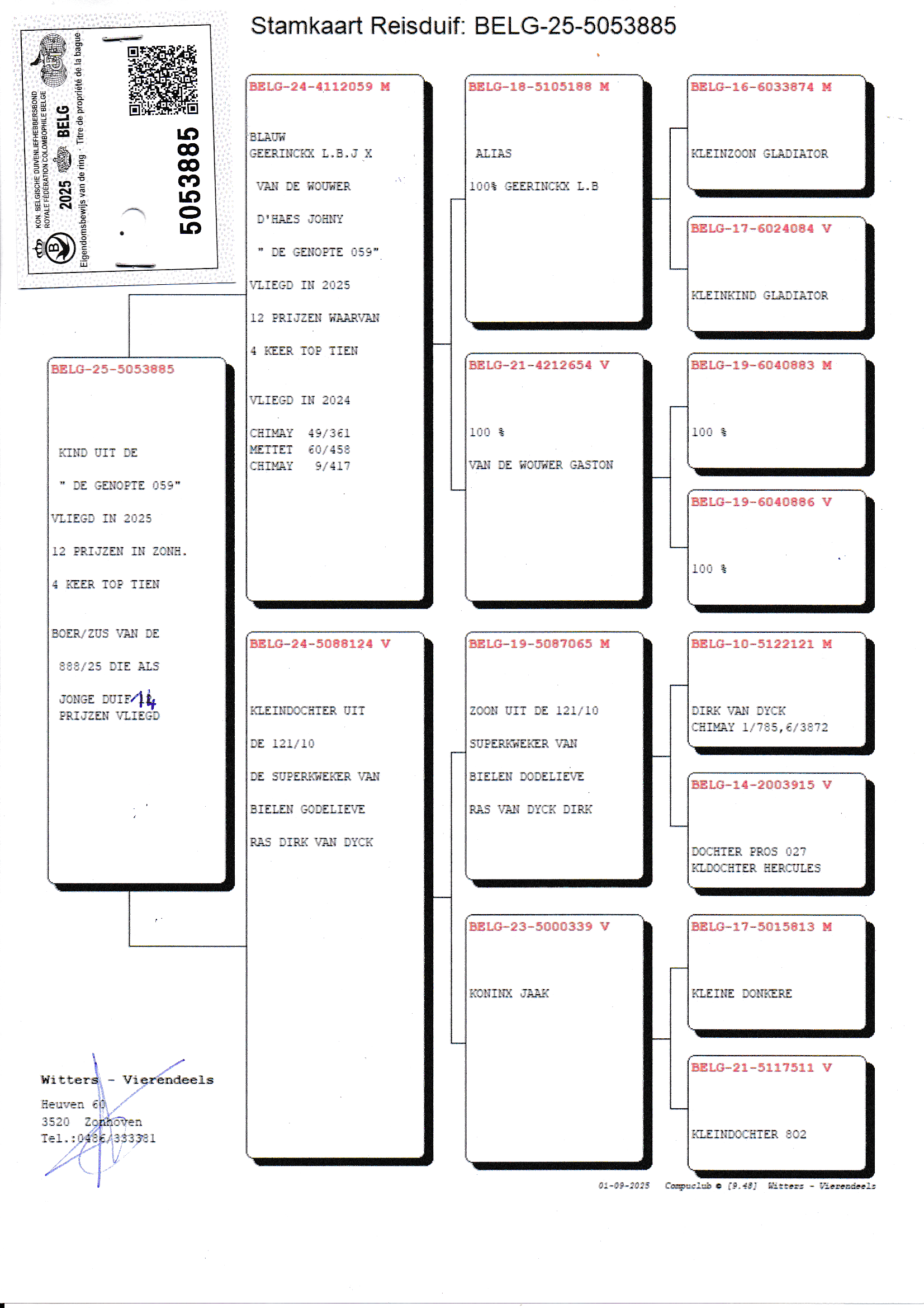 Pedigree Witters-Vierendeels, "Brthr/Sis 888/25 with 14