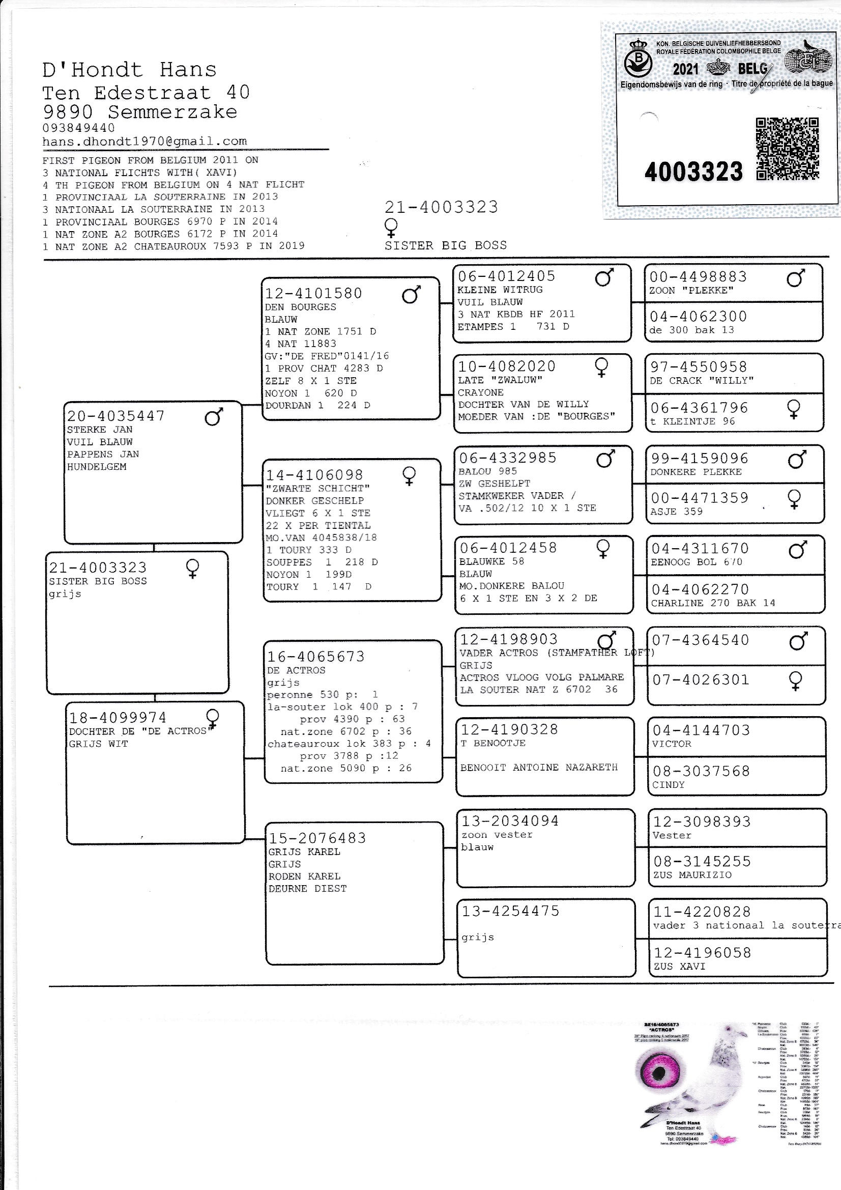 Pedigree Hans D'Hondt, "Sister Big Boss"