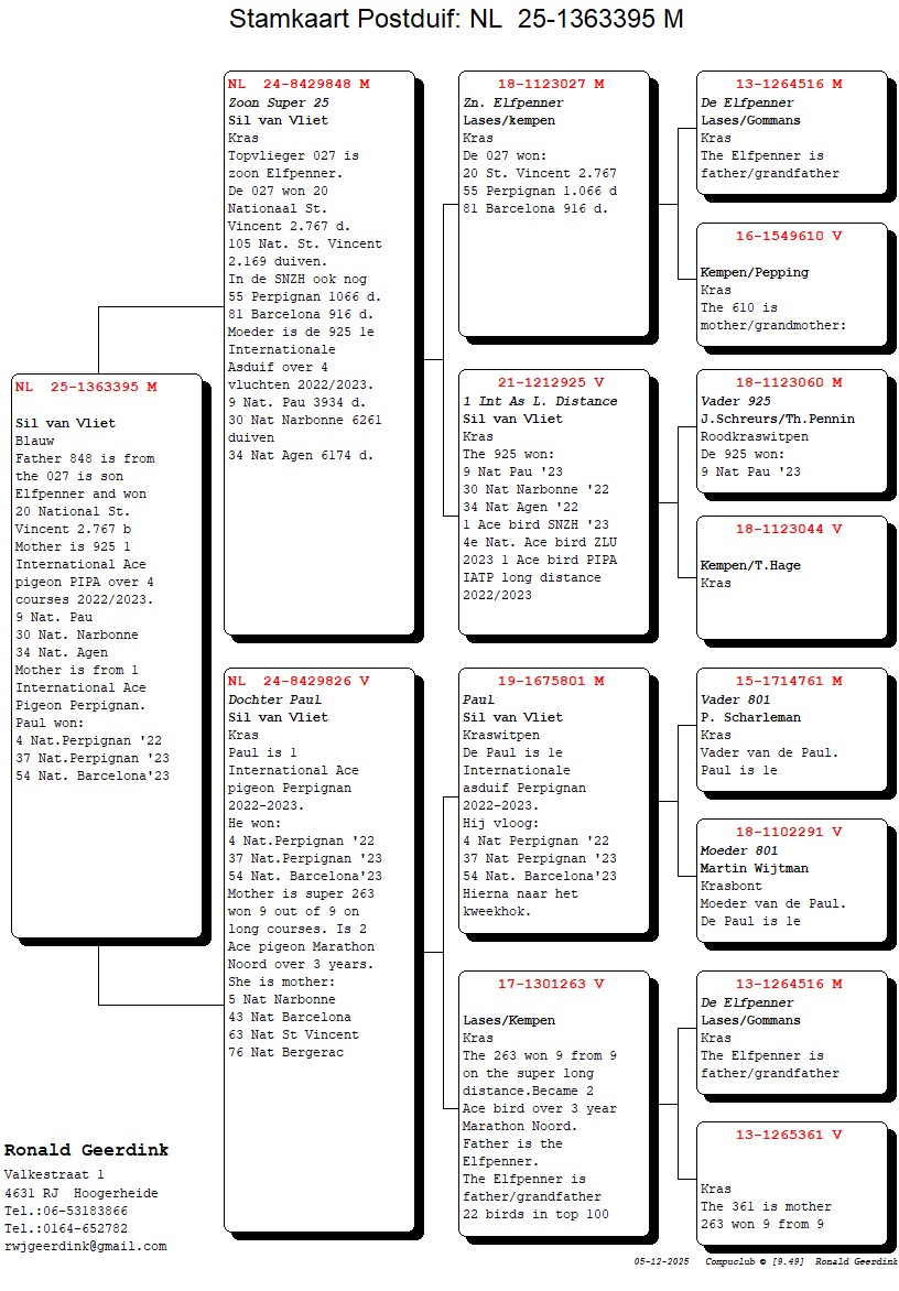 Moeder NL24-8429826 is dochter van ‘Paul’ die vloog in 2 jaar tijd: