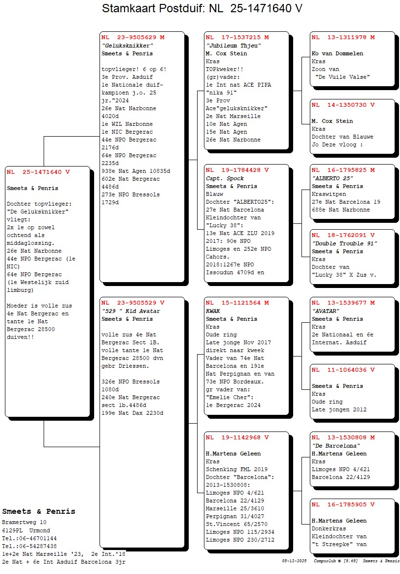 Pedigree Smeets & Penris, "4. Nat. x 1. Nat."