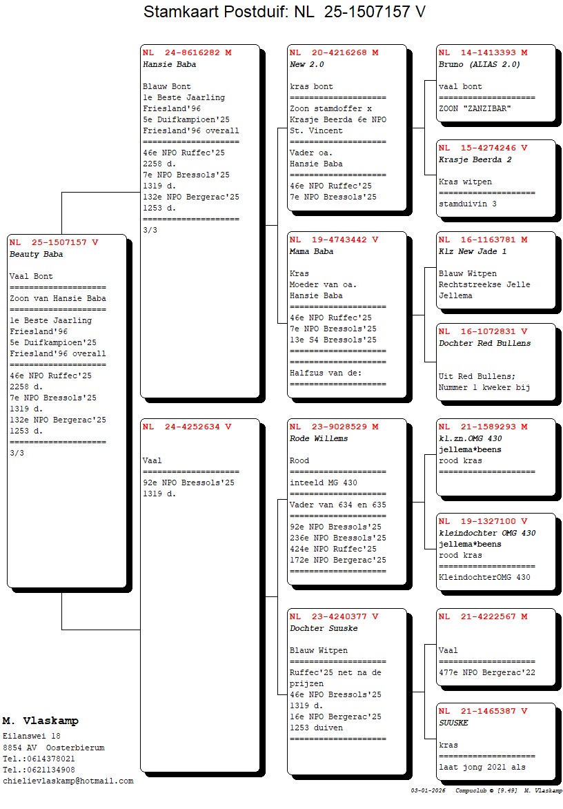 Pedigree Michiel Vlaskamp, "Daughter Hansie Baba"