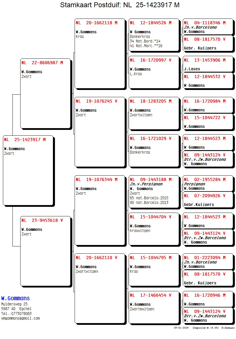 Pedigree Wim Gommans, Barcelona/Perpignan/Zwarte Barcelona"