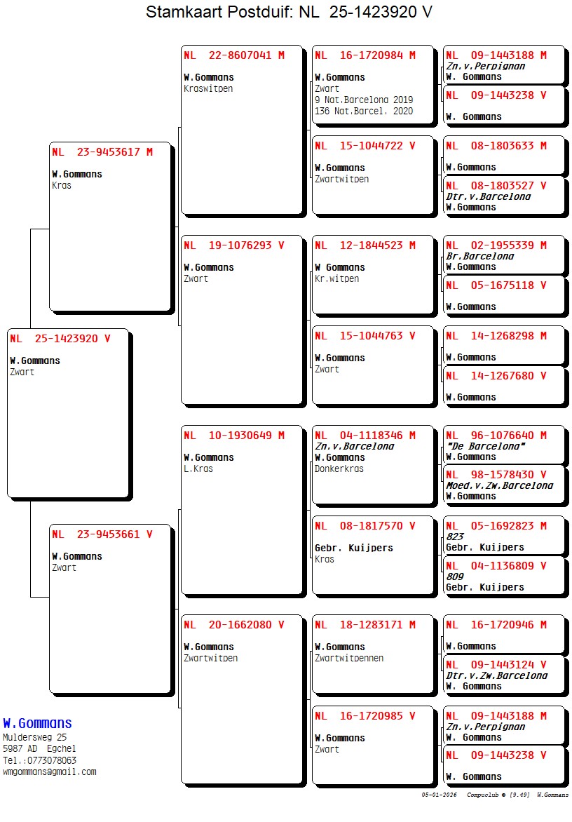 Pedigree Wim Gommans, Barcelona/Perpignan/Zwarte Barcelona"