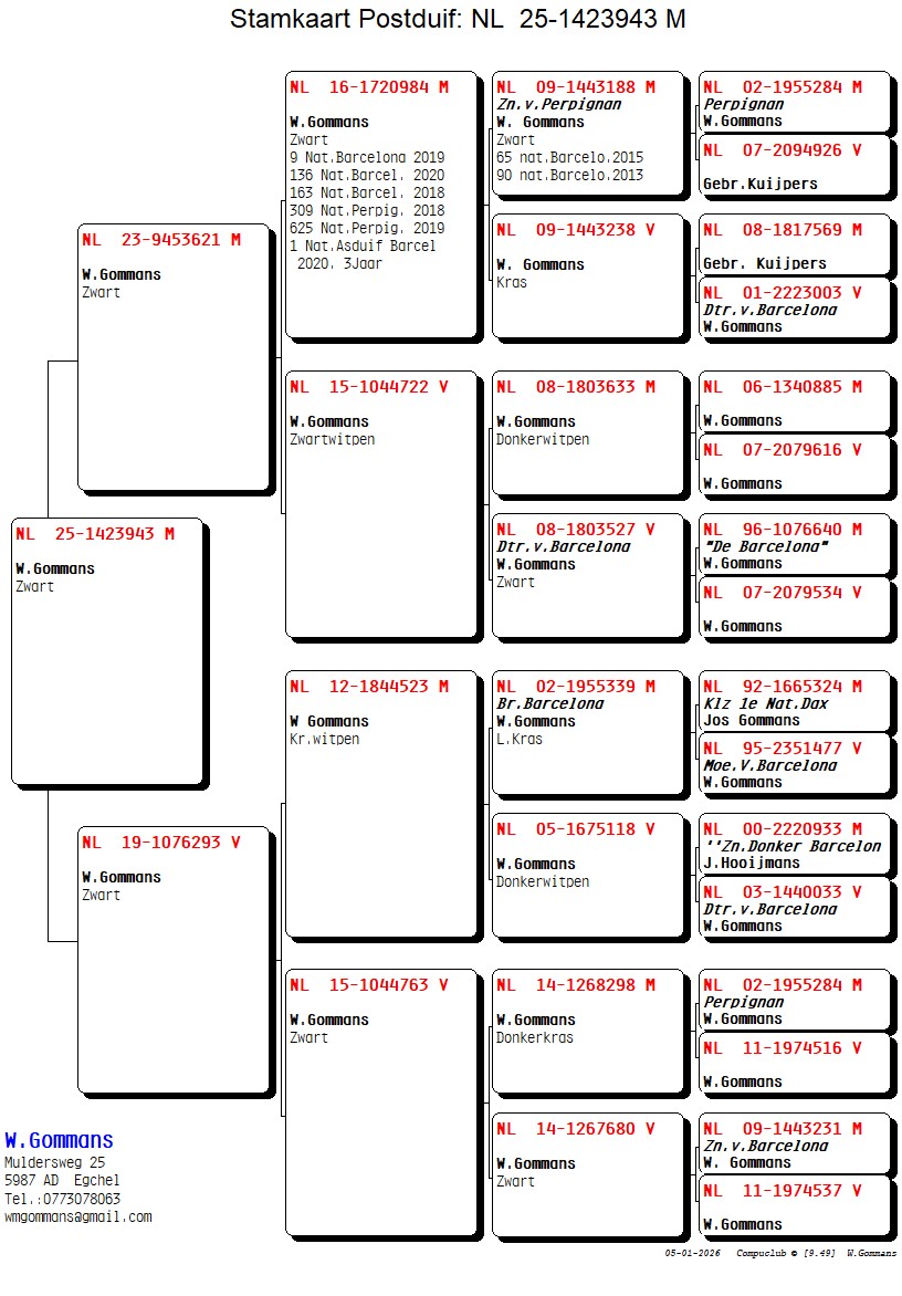 Pedigree Wim Gommans, "Barca Boy 943"