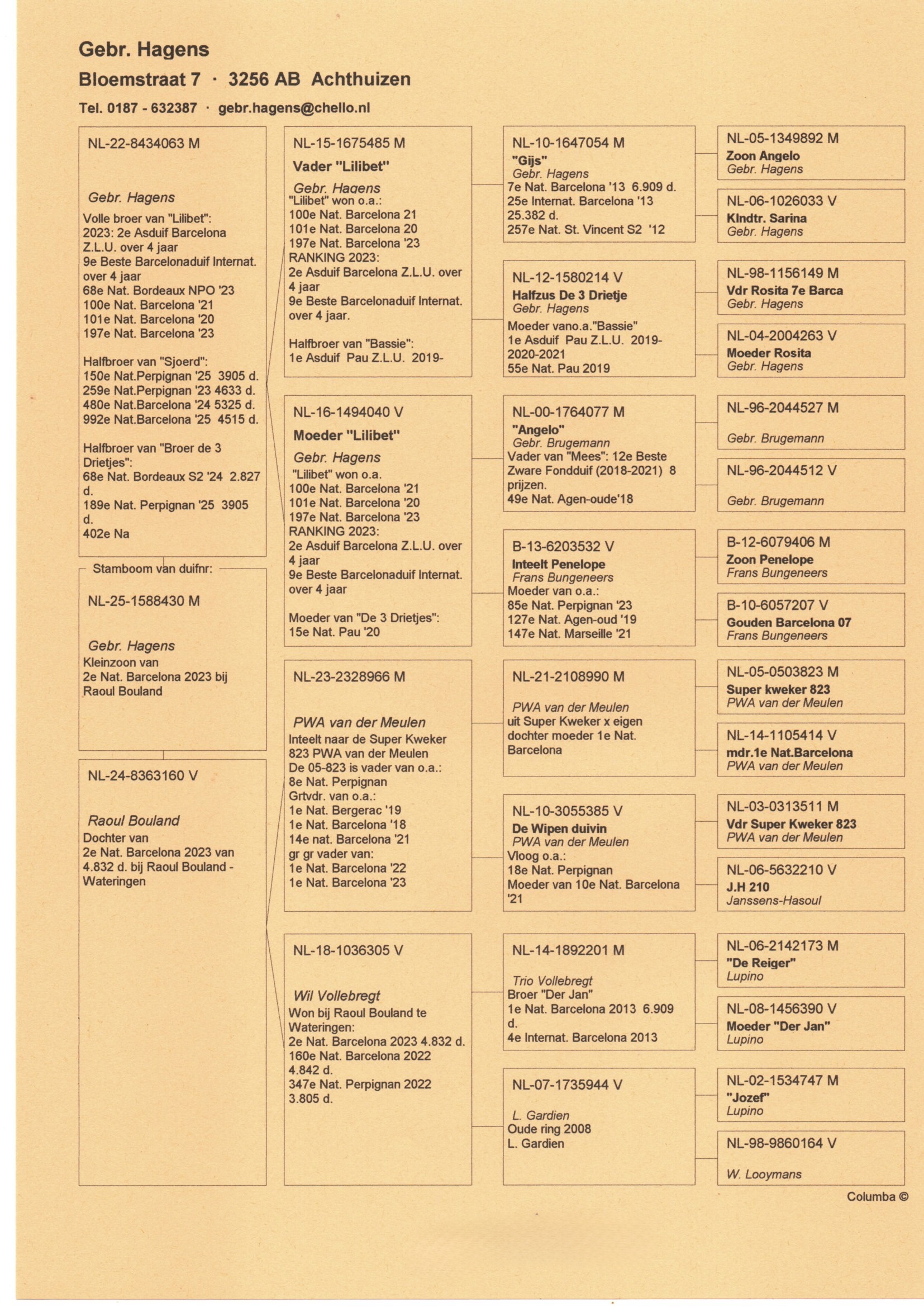 Pedigree Gebr. Hagens, "Klzn. 2. Nat. Barcelona"