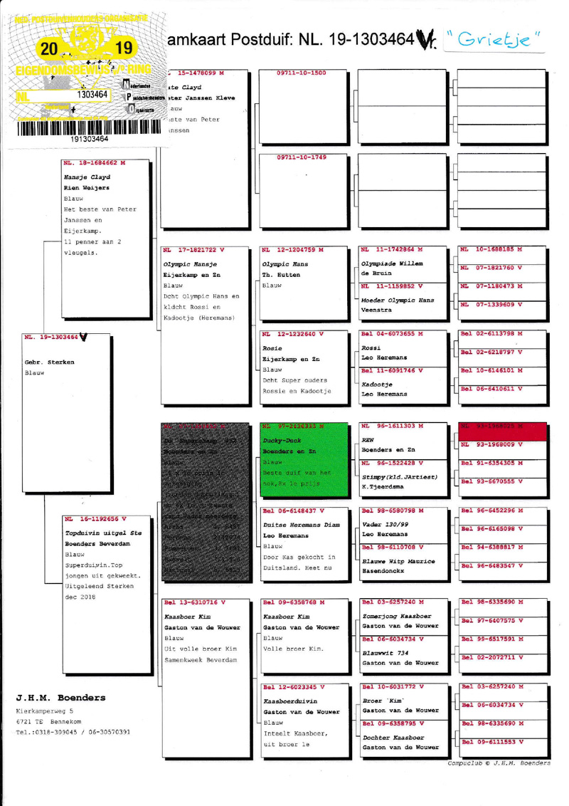 Orig. J.H.M. Boenders met top duiven in de pedigree van super origine
