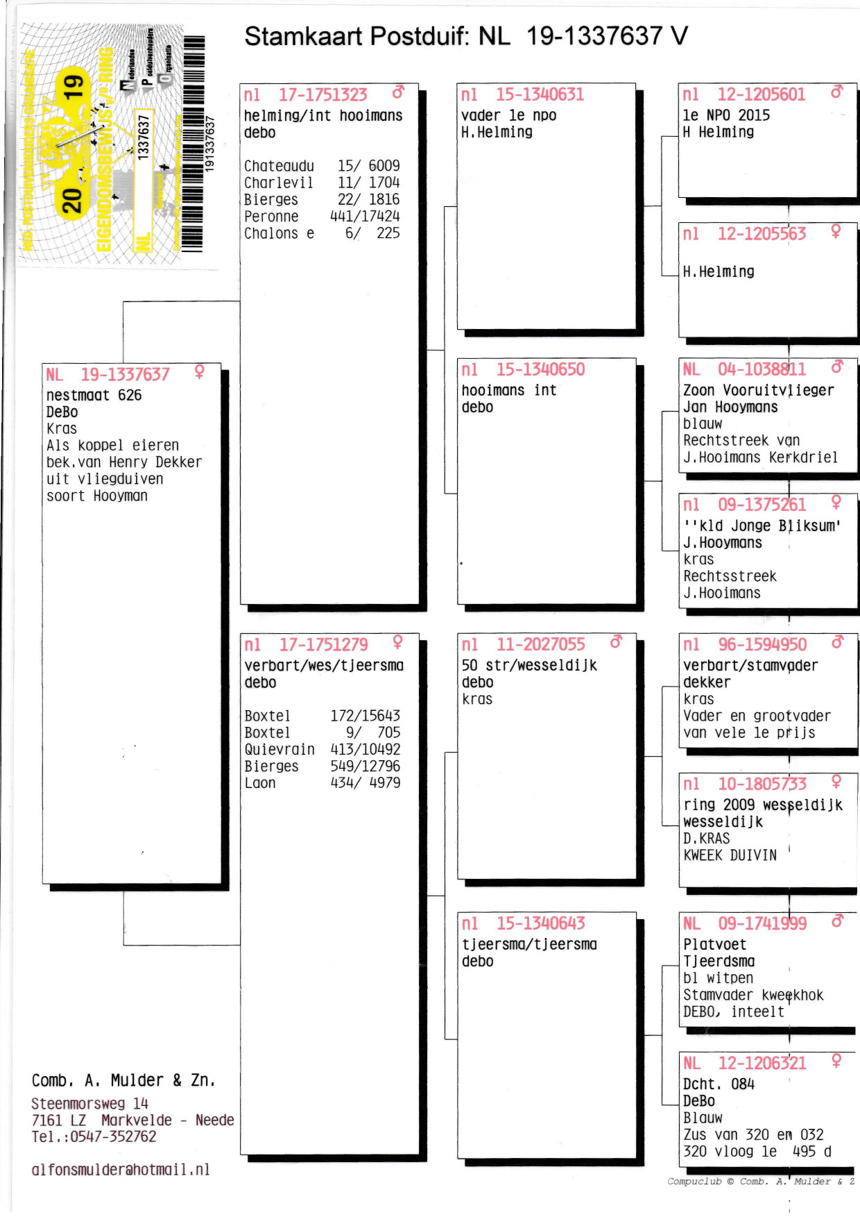 Bekomen via Henry Dekker uit 2 goede vliegduiven