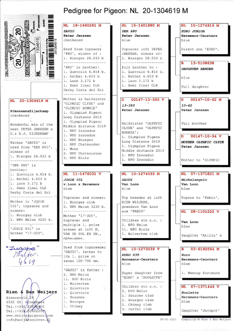 Moeder Van Loon x Heremans > top duivin met o.a. 2. NPO Melun 3.230 d.
