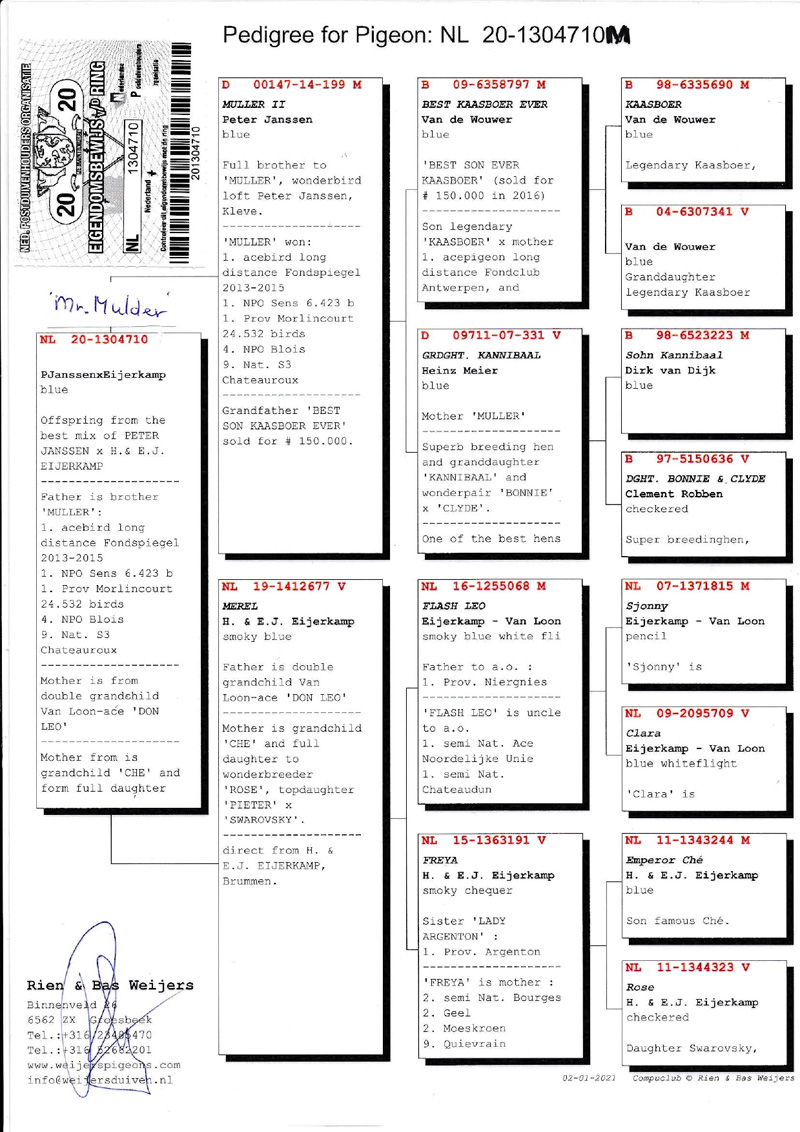 Vader orig. Peter Janssen > volle broer MULLER 1. Nat. Ace Dagfond