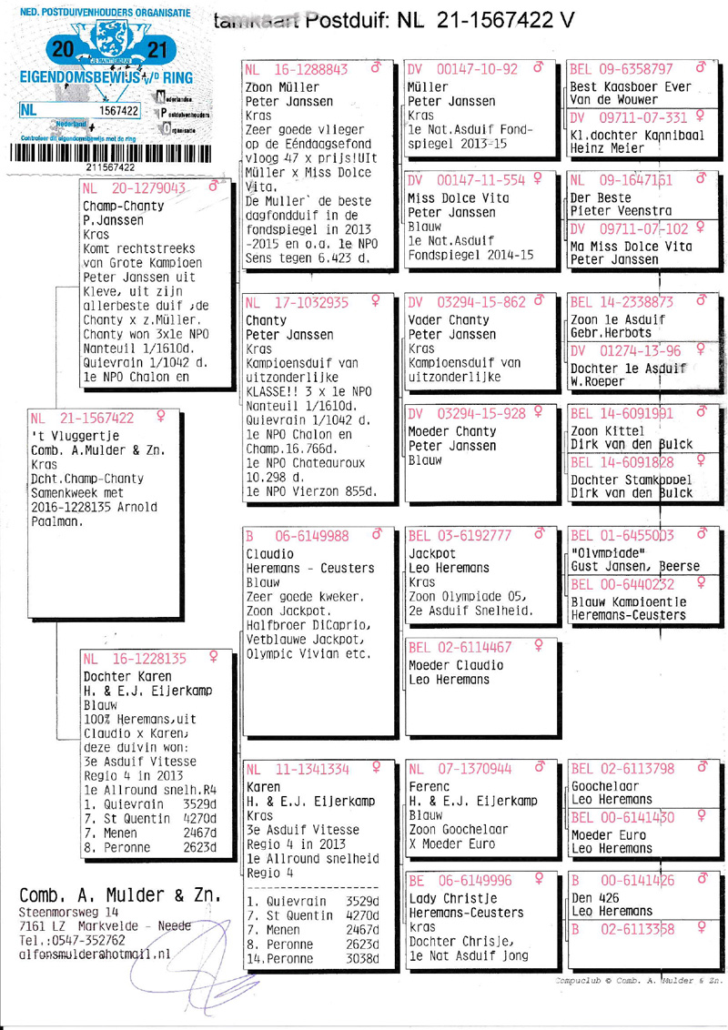 Vader “Champ Chanty” Peter Janssen direct ui super duif “Chanty”