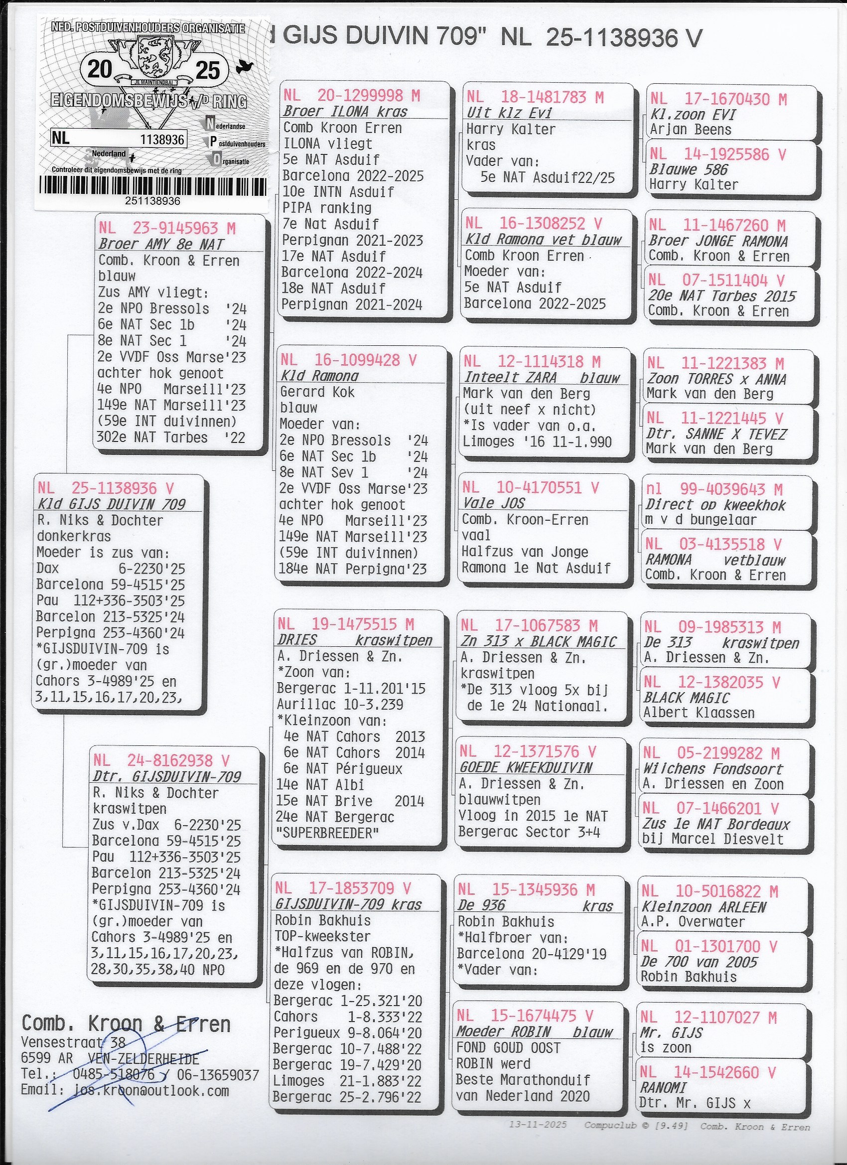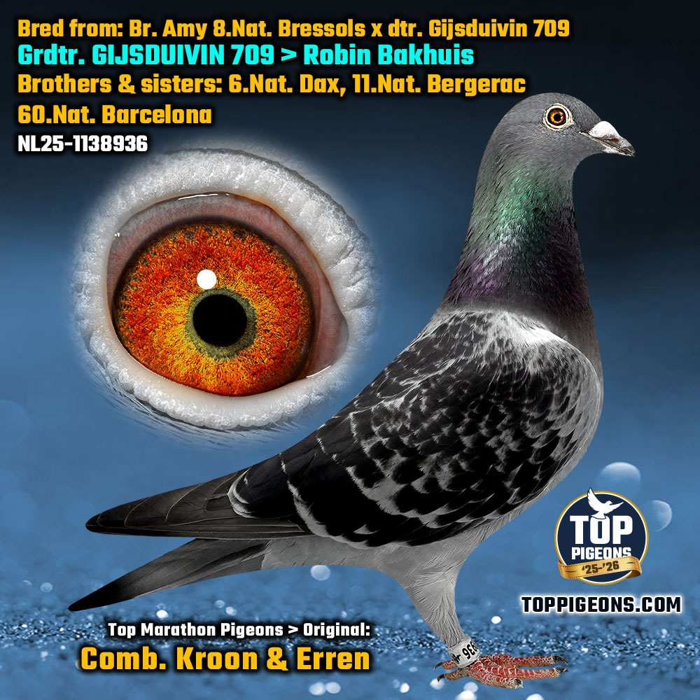 Bred from: Br. Amy 8.Nat. Bressols x dtr. Gijsduivin 709