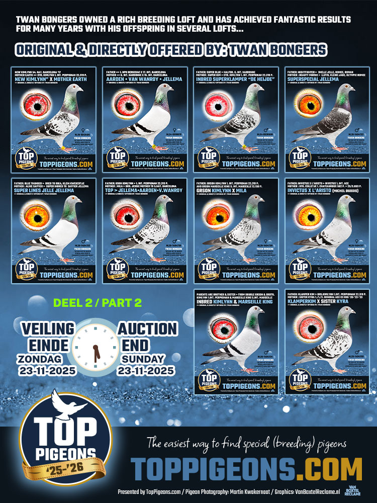 1 National acepigeon long distance wth gggrandson KIMLYNN & Superklamper:5 Nat Bordeaux 8228p; 1e Nat Bordeaux RA 3437p.; 1e npo Bordeaux afd 2 2307p. (clocked 00.18 u); 3 NatZ Agen 1645p. (clocked 6.06u); 73 Nat Bergerac 3188p. (clocked 2.03u)