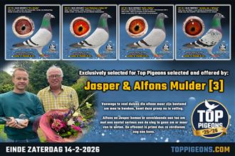 Vanwege te veel duiven die alleen maar zijn bestemd om mee te kweken, komt deze groep nu in veiling. Alfons en Jasper komen er onvoldoende aan toe om met een aantal serieus aan de slag te gaan om er meer van te weten. De afkomst is prima dus ze verdienen nog een kans.