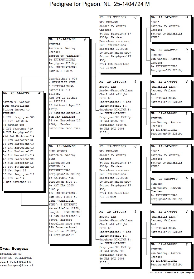 Pedigree Twan Bongers, "Kimbear x Blue Wonder"