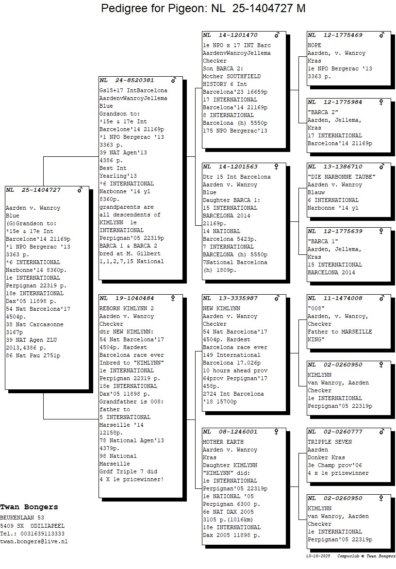 Pedigree Twan Bongers, "15+17 Int. Barca x Reborn Kimlynn