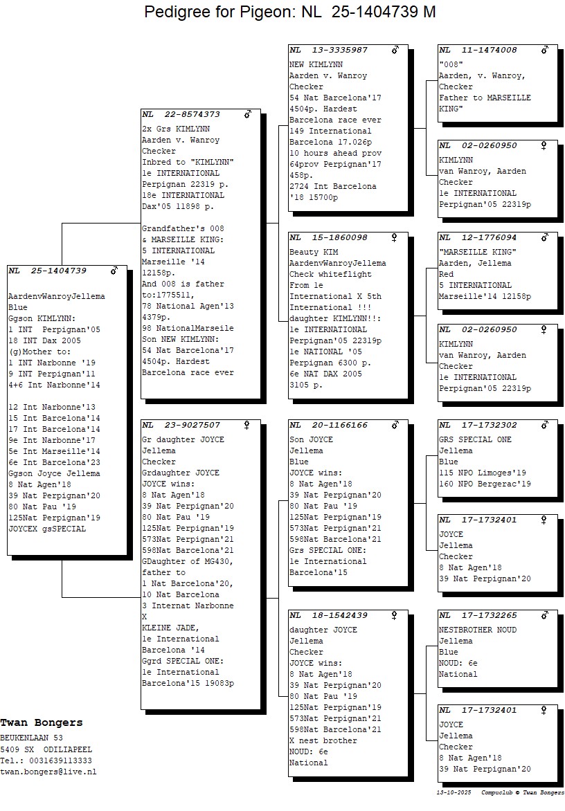 Pedigree Twan Bongers, "Double Kimlynn x Joyce"