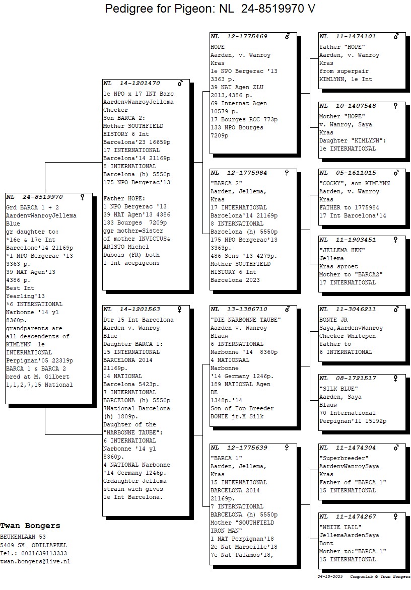 Pedigree Twan Bongers, "Aarden*Van Wanroy*Jellema"