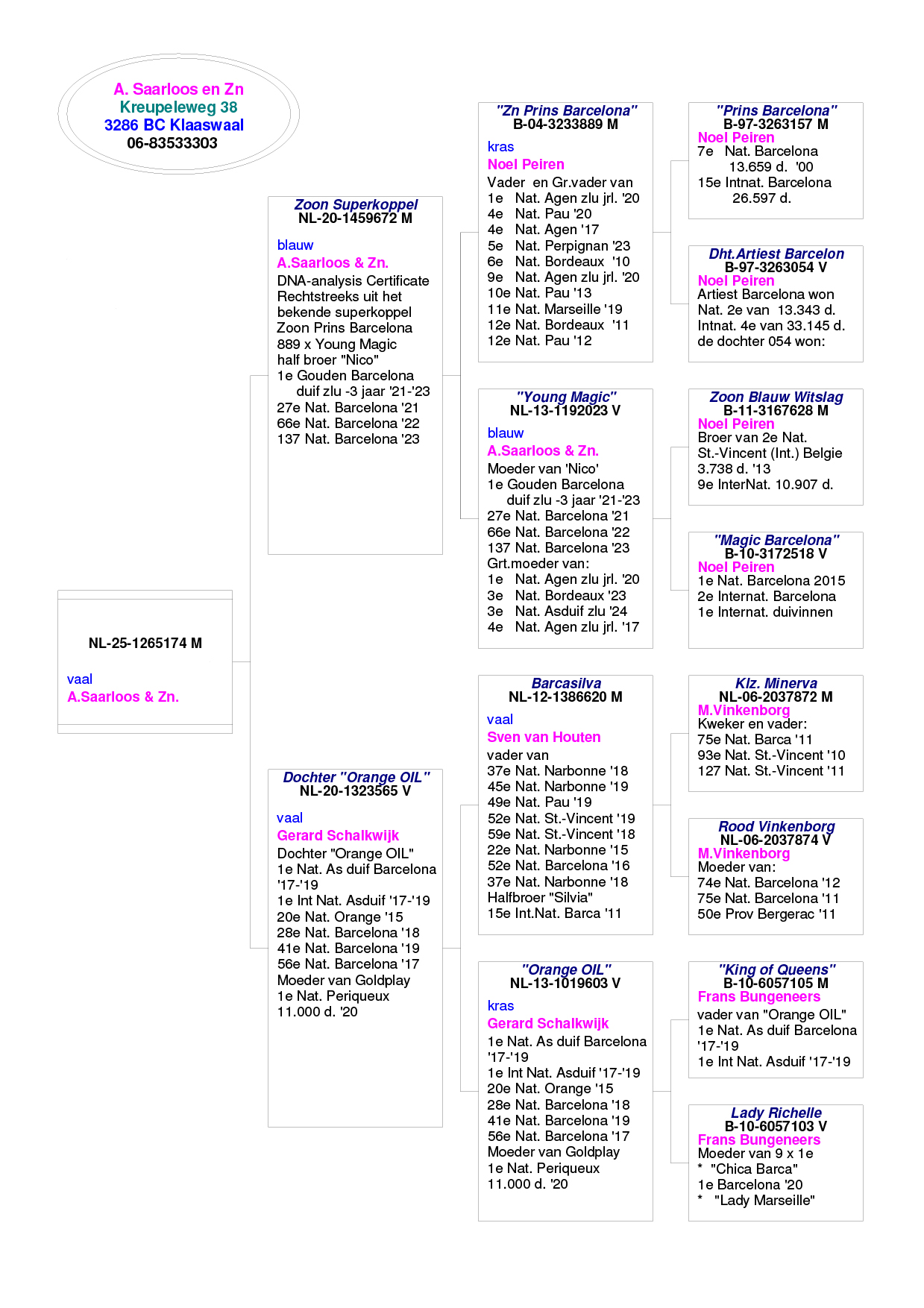 Pedigree A. Saarloos & Zn, "Son Superkoppel x Dtr. Orange